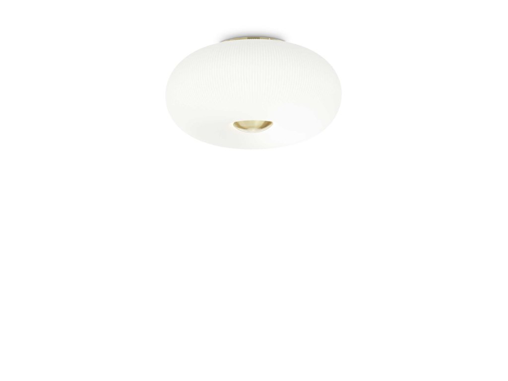 Štýlové nástenné svietidlo ARIZONA PL3 z kolekcie interiérového osvetlenia Ideal Lux vo väčšom prevedení s priemerom 40 cm účelne nasvietia obývacie priestory, spálne a jedálne v modernom alebo klasickom interiéri. Kovový rám svietidla a dekoratívne doplnky majú mosadznú povrchovú úpravu. Príjemný rozptyl svetla poskytuje difúzor z brúseného mliečneho skla, na ktorom sú vyrazené ozdobné prúžky. Luster je osadený päticami GX53 s maximálnym príkonom 3 x 15 W. Súčasťou balenia je LED žiarovka s príkonom 3 x 9,5 W a teplotou chromatickosti 3000K (teplé biele svetlo). Krytie IP20 je vhodné na použitie do interiéru.Dodatočné parametre