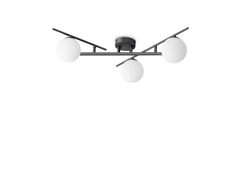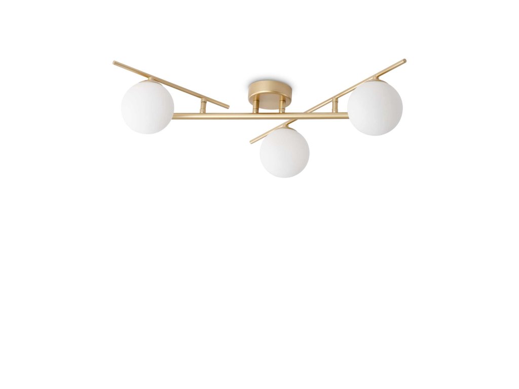 logo-ideal-luxStropné svietidlo ATLAS vyrobené z kovu a matne lakované čiernou, bielou alebo zlatou farbou. Ramená svietidla sú nastaviteľné. Difúzory sú z bieleho opálového skla leptaného kyselinou. Svietidlo je ideálne do obývacej izby či spálne