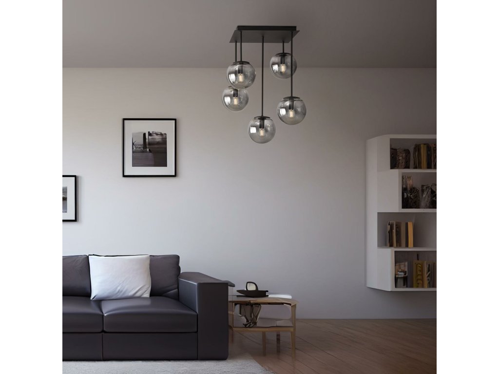 Vnútorné stropné svietidlo, kovová konštrukcia v pieskovo čiernej farbe, dymové difúzory.