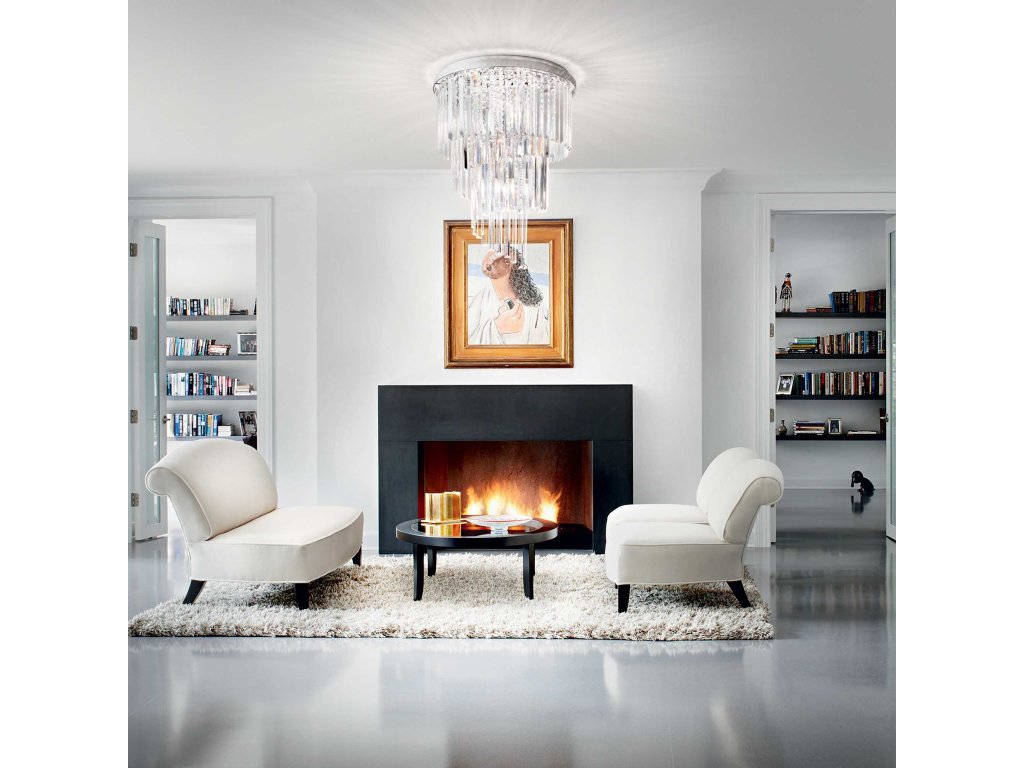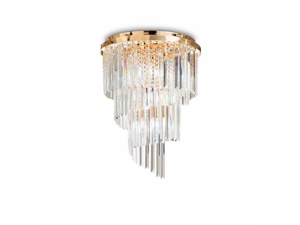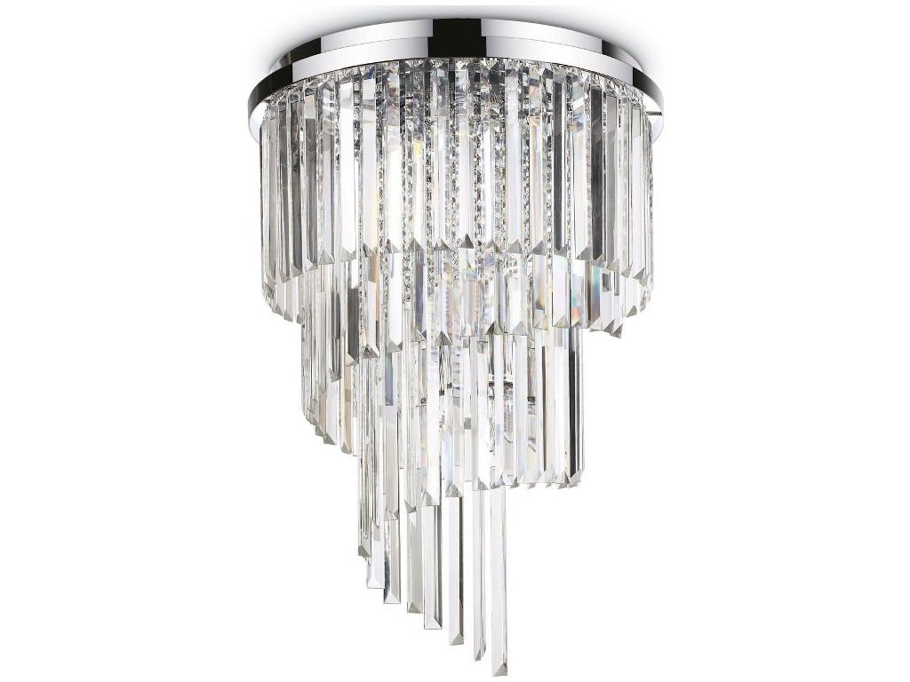 Monumentálne prisadené stropné svietidlo CARLTON PL12 s priemerom 50 cm sa skladá z dekoratívnych osemuholníkových retiazok doplnených oveskami z brúseného krištáľu. Základňa lustra je vyrobená z kovu s chrómovou alebo mosadznou povrchovou úpravou. Svietidlo je možné kombinovať s moderným aj klasickým interiérom. Perfektne vynikne vo veľkých miestnostiach s vysokým stropom, v obývacích izbách, v hotelových interiéroch. Luster je osadený päticami E14 s maximálnym príkonom 12 x 40 W. Žiarovky nie sú súčasťou balenia. Odporúčame zvoliť LED zdroje najmä pre ich dlhú životnosť a predovšetkým významnú úsporu elektrickej energie. IP20 je vhodné na použitie do interiéru.