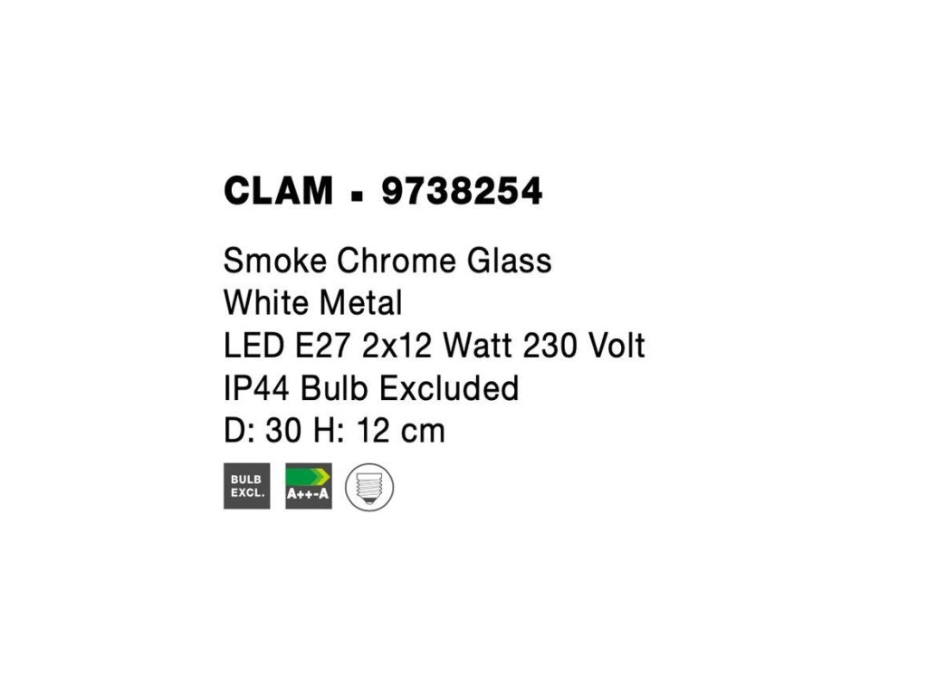 Stropné svietidlo CLAM dymové chrómové sklo biela kov E27 2x12W IP44