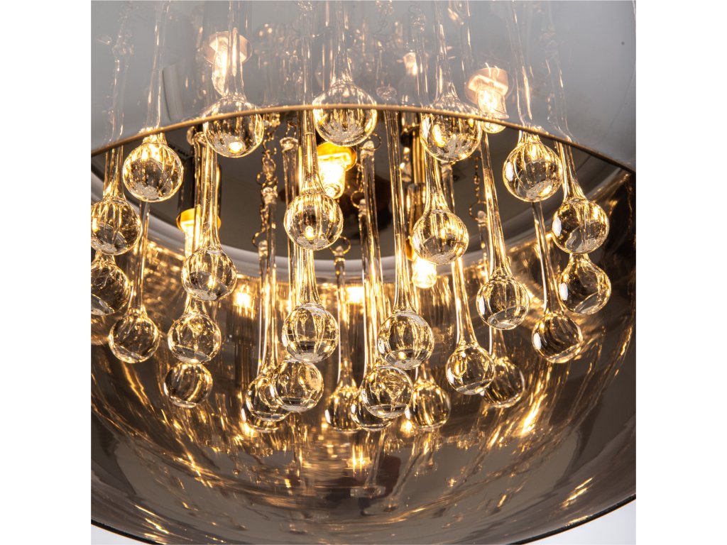 - luxusné stropné LED svietidlo s chrómovým zrkadlovým skleneným tienidlom a elegantnými krištáľovými závesmi