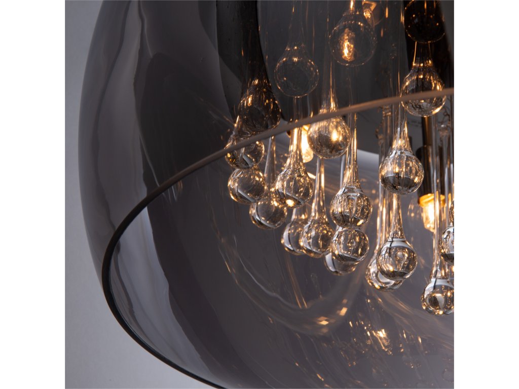Ohňostroj svetla a skla dodáva miestnosti hrejivú, tajomnú atmosféru vďaka vzhľadu dymového skla.