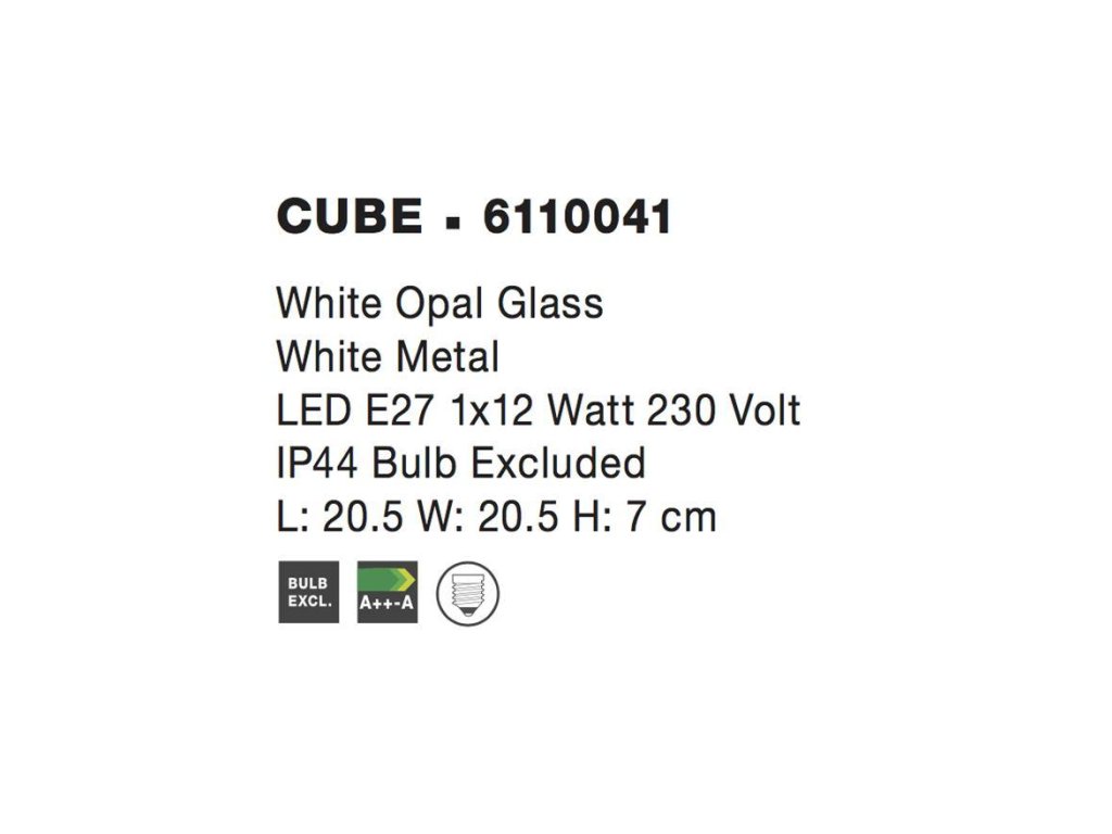 Stropné svietidlo CUBE IP44 biele opálové sklo E27 1x12W