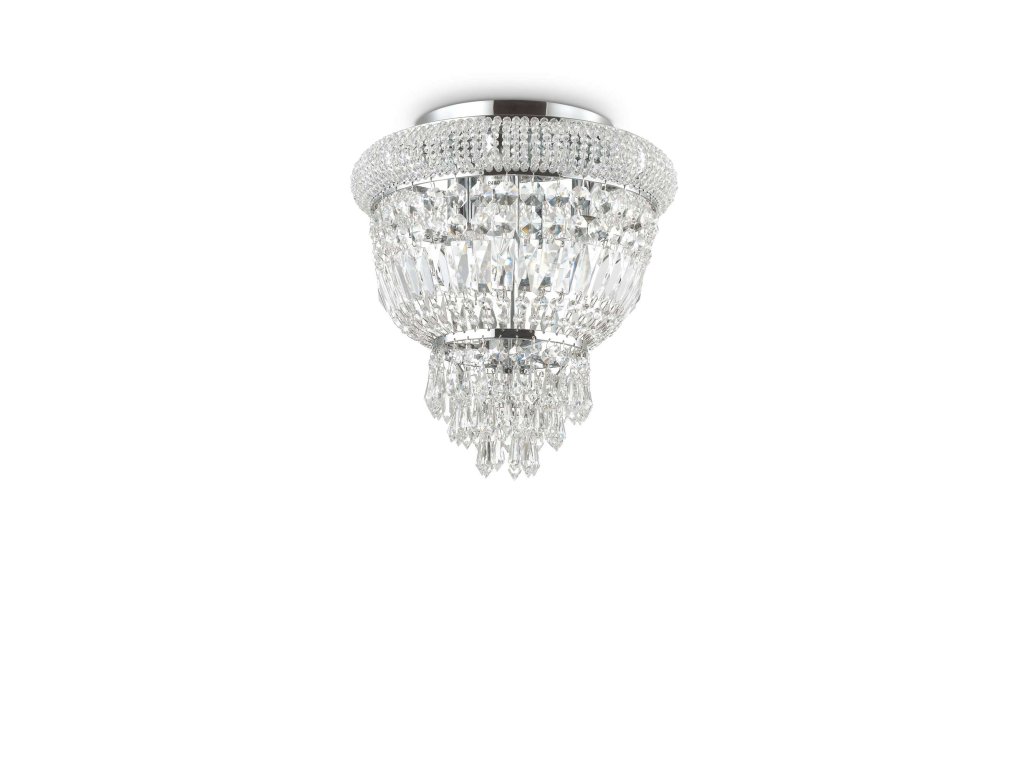 Elegantné stropné prisadené svietidlo DUBAI PL3 z kolekcie interiérového osvetlenia Ideal Lux v najmenšom chrómovom prevedení s priemerom 32 cm vhodne doladí každý interiér v modernom aj klasickom štýle Ideálne rozsvietia haly, obývacie priestory alebo hotelové interiéry s povrchovou úpravou dekoratívnymi prvkami z brúseného číreho krištáľu v tvare osemuholníkov a hranolov Štýlové svietidlo je osadené päticami E14 o maximálnom príkone 3 x 40 W. Žiarovky nie sú súčasťou balenia. Odporúčame použiť úsporné LED svetelné zdroje s dlhou životnosťou.Dodatočné parametre