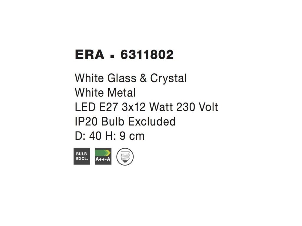 Stropné svietidlo ERA biele sklo a krištáľ chrómovaný kov E27 2x12W