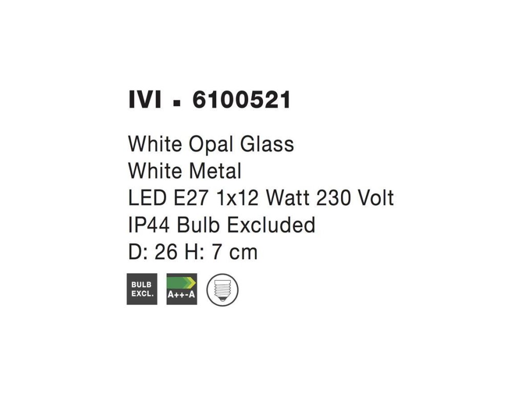 Stropné svietidlo IVI, IP44 biele opálové sklo E27 1x12W