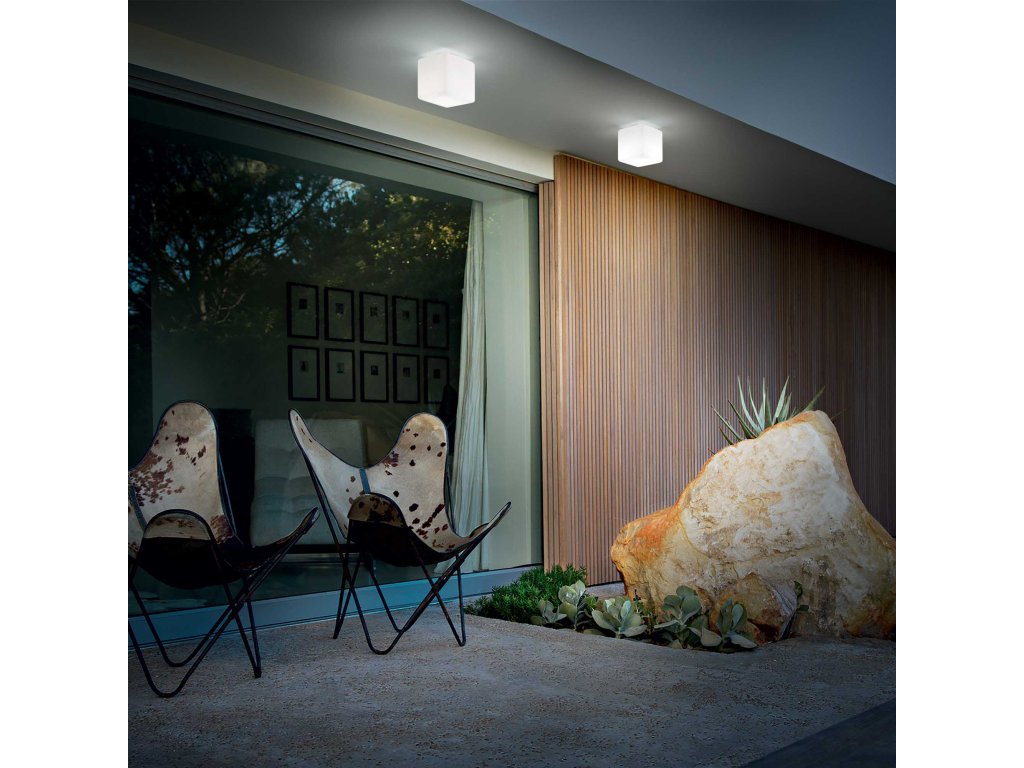 Vonkajšie stropné svietidlo LUNA PL1 MEDIUM z kolekcie záhradného osvetlenia Ideal Lux vo väčšom prevedení v tvare kocky o veľkosti 11 cm s možnosťou montáže na stenu aj strop ideálne nasvieti vonkajšie priestory alebo terasy. príkonu 1 x 5 W. Súčasťou balenia je úsporná LED žiarovka (obj. kód 209036) s príkonom 1 x 3,2 W a teplotou chromatickosti 4000 K. Krytie IP44 značí vodeodolnosť a svietidlo je tak vhodné na vonkajšie použitie.