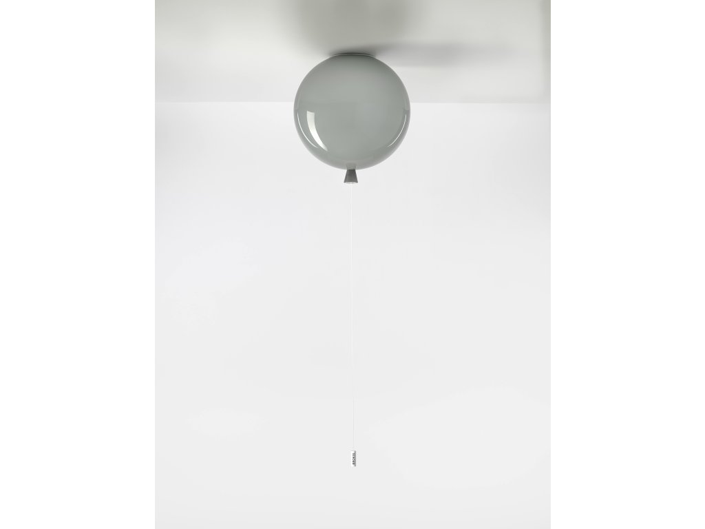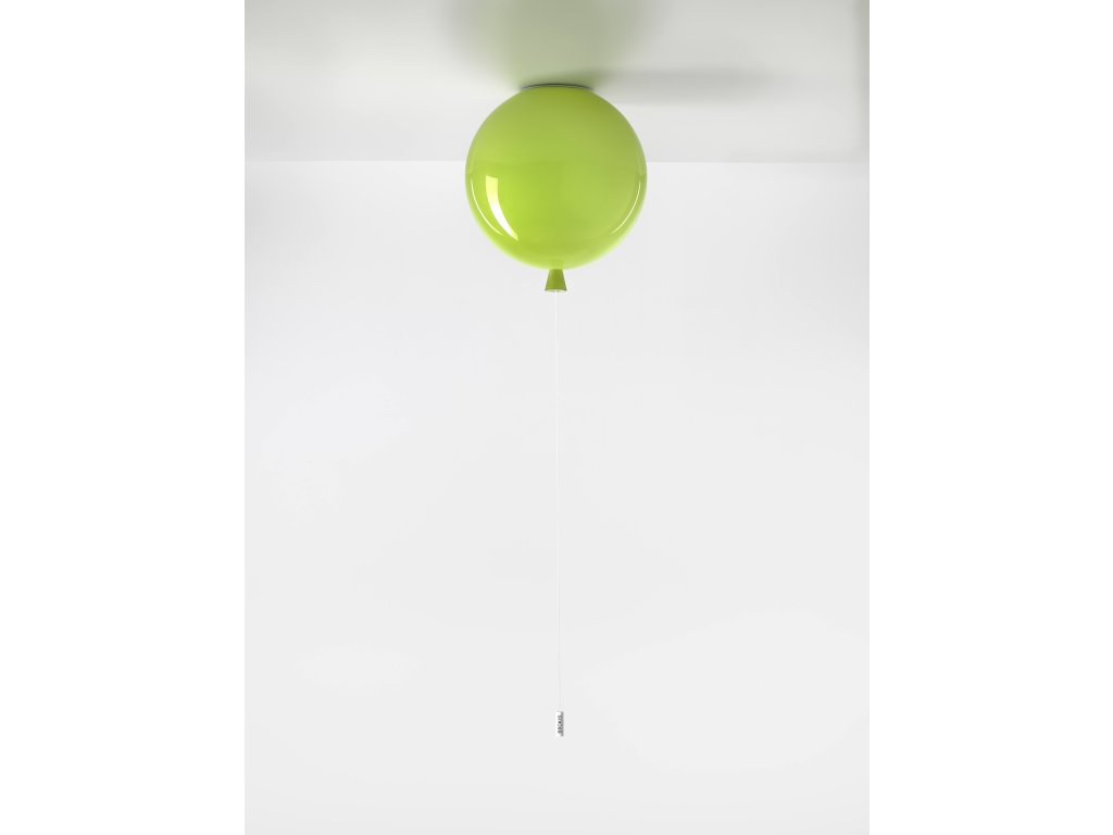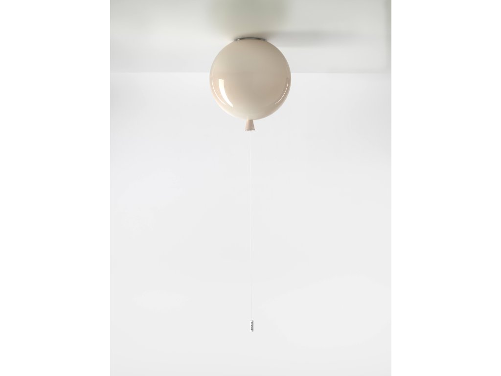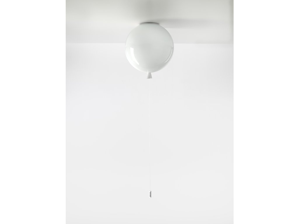 Stropné svietidlo MEMORY o šírke 30 cm a výške 32,5 cm, v tvare nafúknutého balónika v niekoľkých farebných prevedeniach. Kolekcia stropných a nástenných svietidiel Memory je inšpirovaná spomienkami na detstvo. Visiace šnúry slúžia na vypínanie a zapínanie svietidiel. Tri veľkosti a množstvo farebných prevedení dáva v interiéri voľný priechod hre, fantázii a vytvoreniu rôznych svetiel. Triplex opálové lesklé sklo - ručná výroba v ČR.