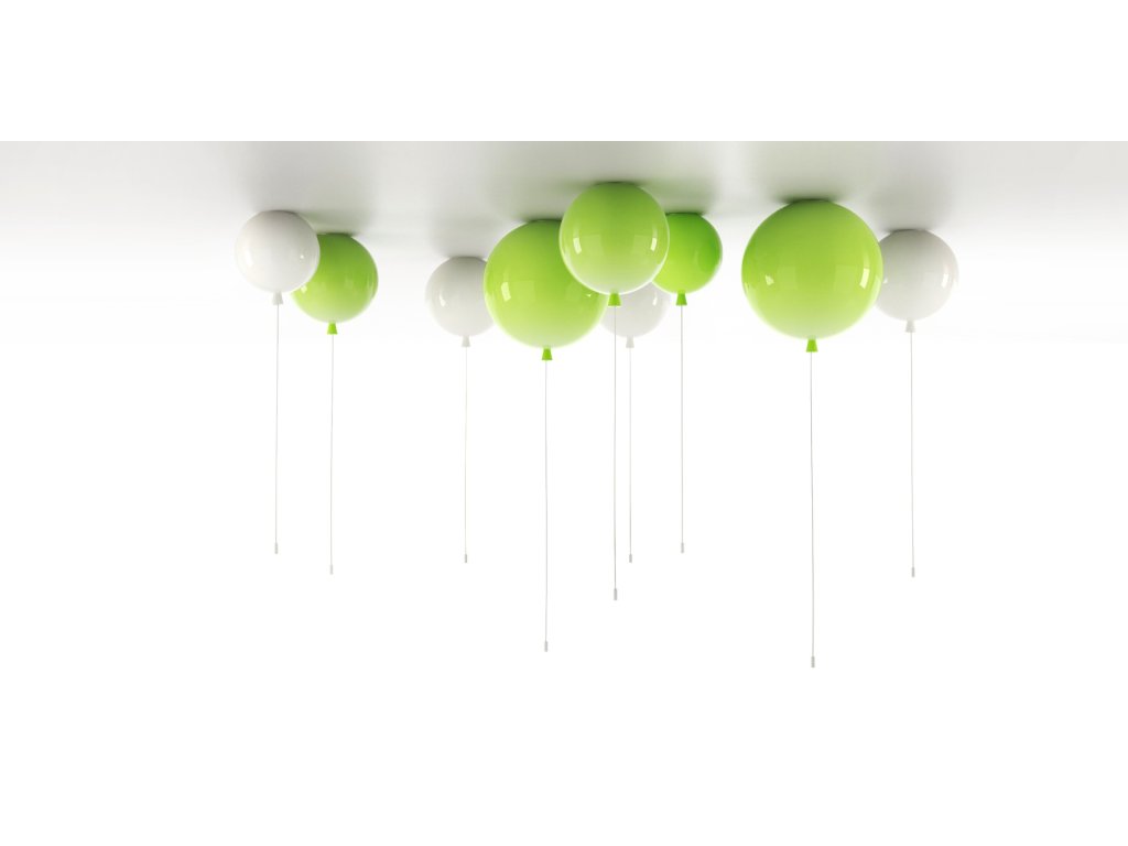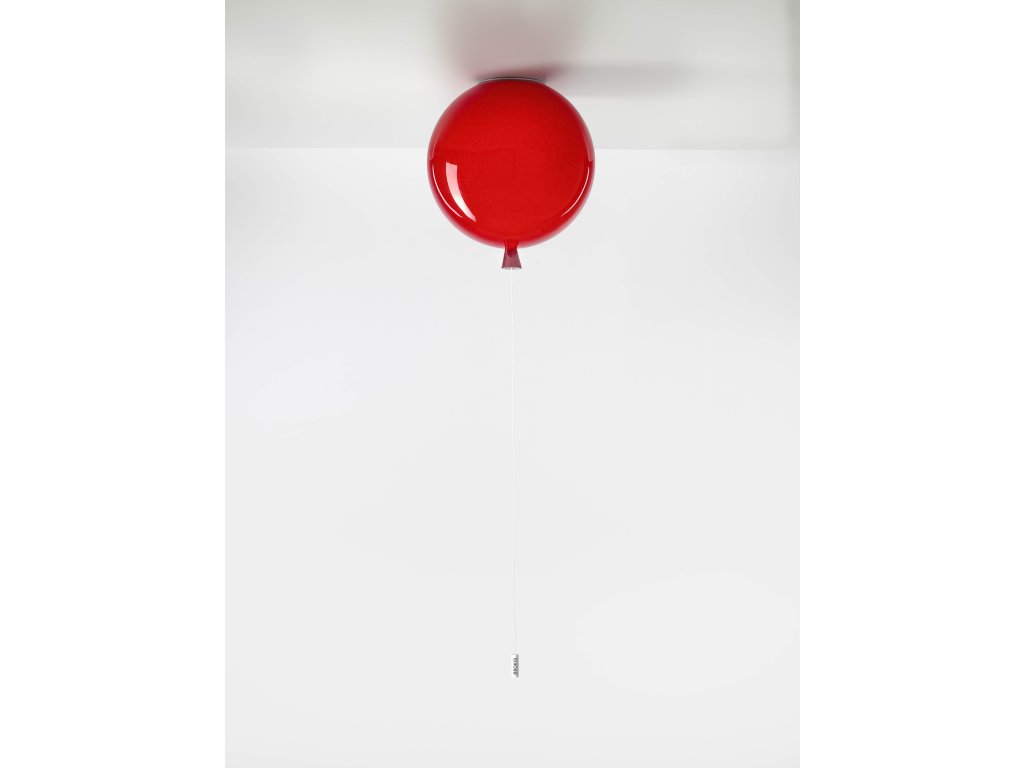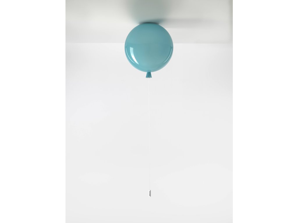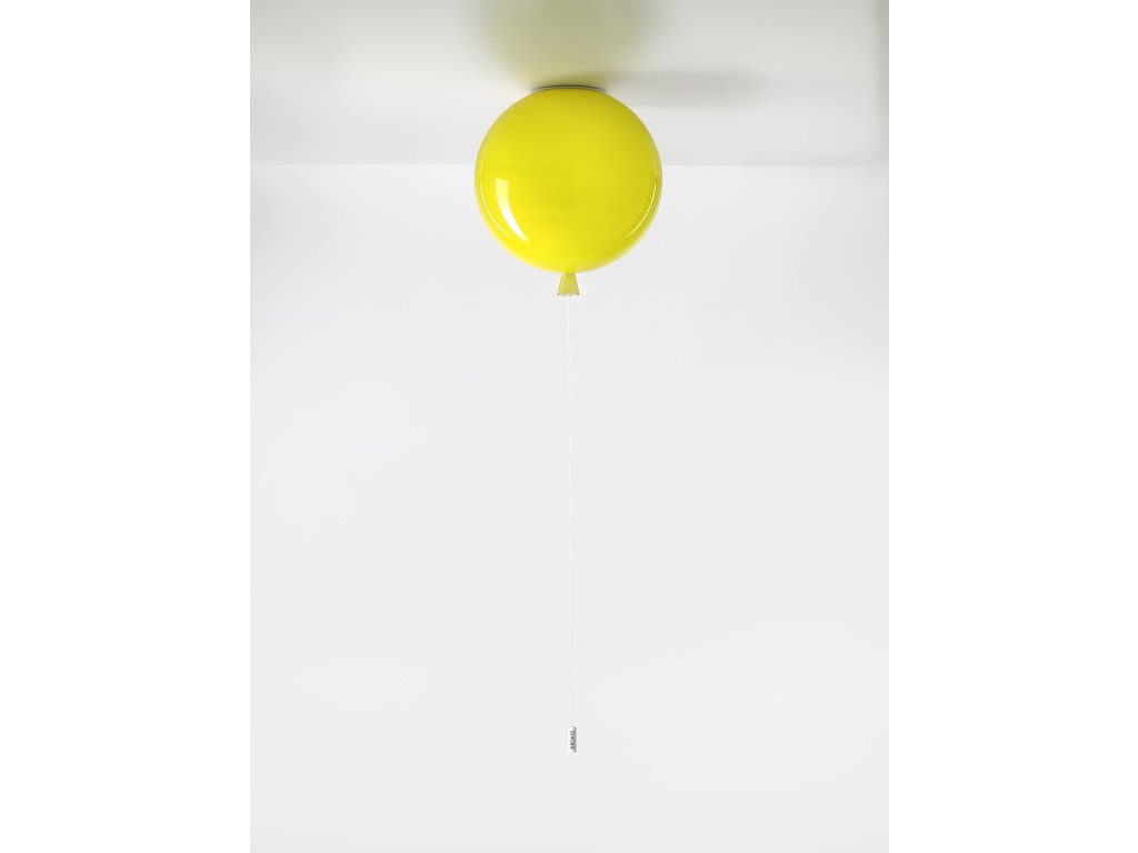 Stropné svietidlo MEMORY o šírke 30 cm a výške 32,5 cm, v tvare nafúknutého balónika v niekoľkých farebných prevedeniach. Kolekcia stropných a nástenných svietidiel Memory je inšpirovaná spomienkami na detstvo. Visiace šnúry slúžia na vypínanie a zapínanie svietidiel. Tri veľkosti a množstvo farebných prevedení dáva v interiéri voľný priechod hre, fantázii a vytvoreniu rôznych svetiel. Triplex opálové lesklé sklo - ručná výroba v ČR.