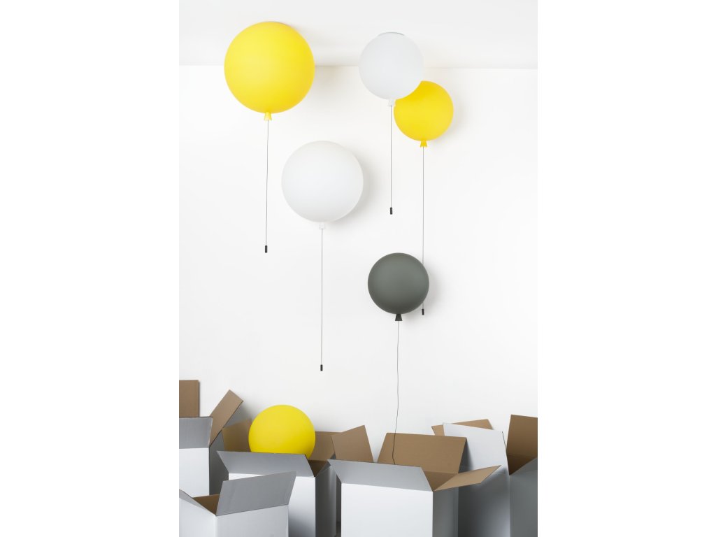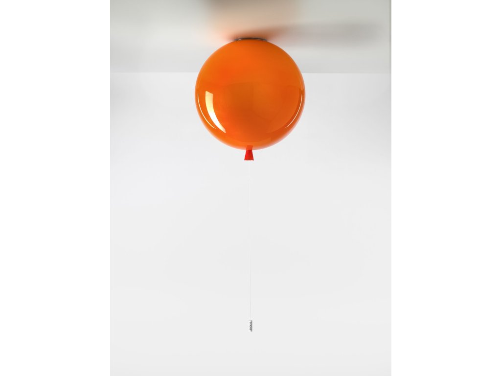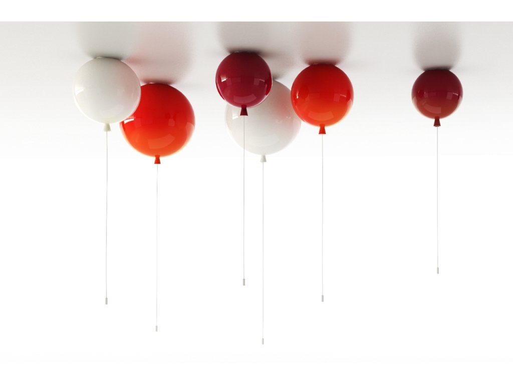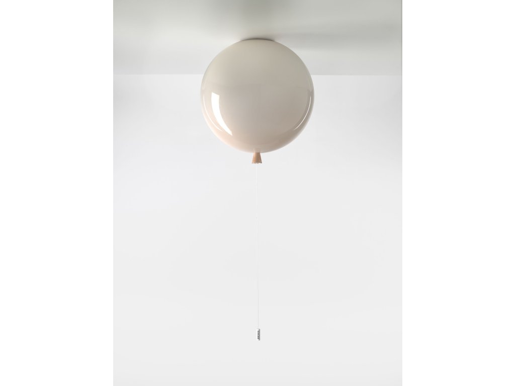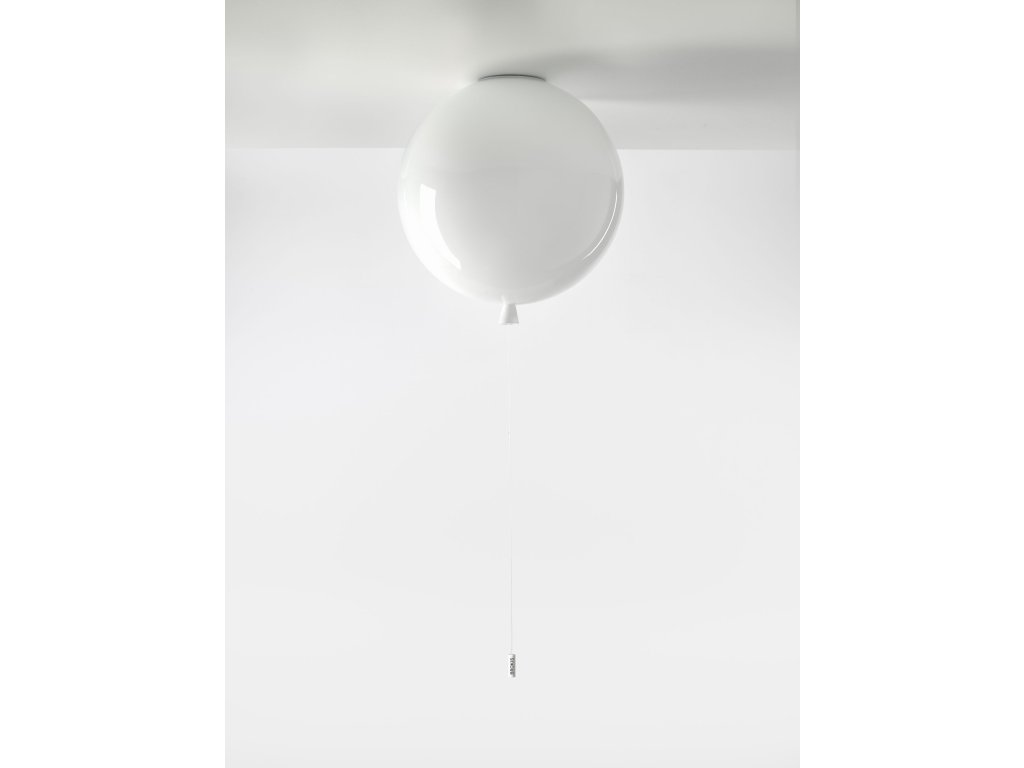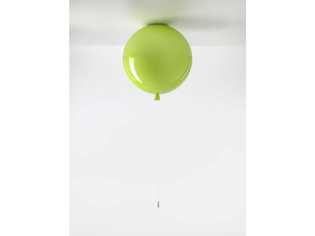 Stropné svietidlo MEMORY o šírke 40 cm a výške 41,5 cm, v tvare nafúknutého balónika v niekoľkých farebných prevedeniach. Kolekcia stropných a nástenných svietidiel Memory je inšpirovaná spomienkami na detstvo. Visiace šnúry slúžia na vypínanie a zapínanie svietidiel. Tri veľkosti a množstvo farebných prevedení dáva v interiéri voľný priechod hre, fantázii a vytvoreniu rôznych svetiel. Triplex opálové lesklé sklo - ručná výroba v ČR.