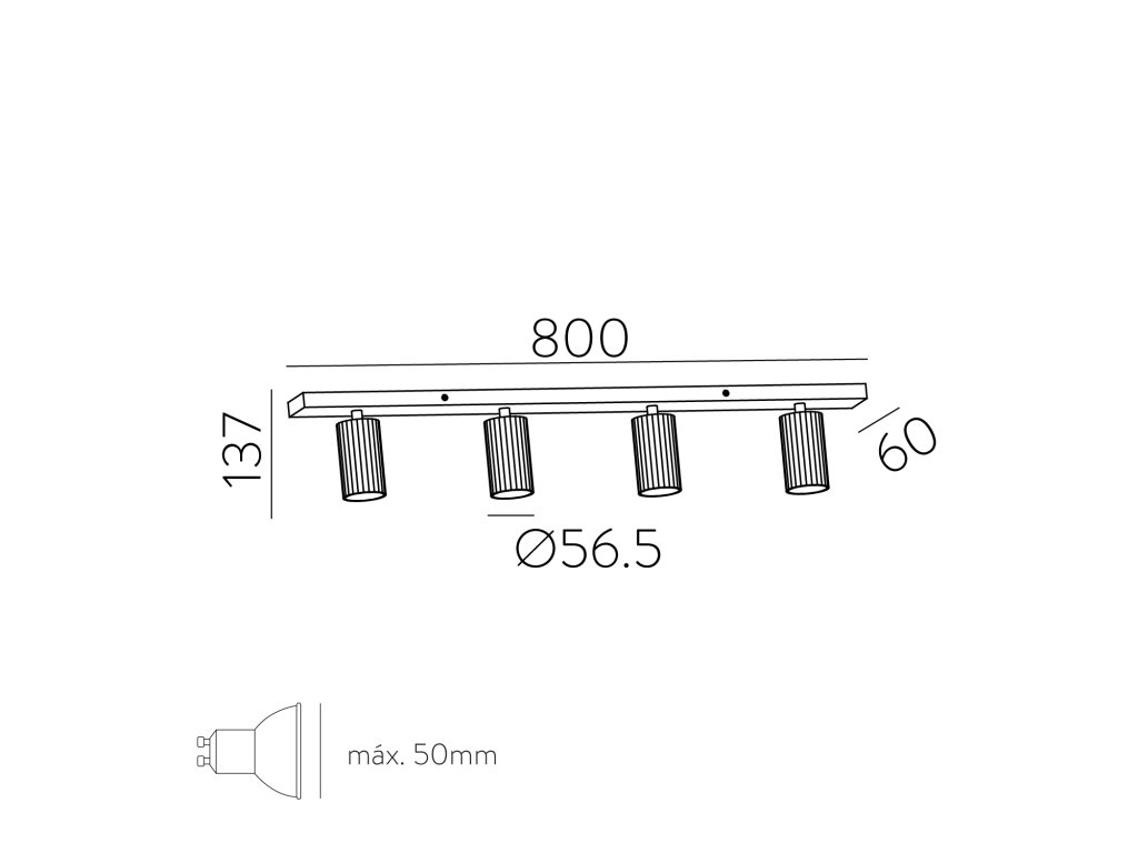 Stropné svietidlo Modrian sa skladá z lineárnej základne vyrobenej z hliníka a štyroch nastaviteľných reflektorov - 360° nastaviteľné reflektory pre nasmerovanie svetla do všetkých smerov.