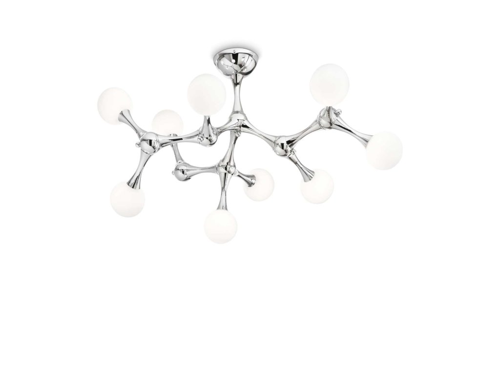 Dizajnové osvetlenie NODINO rozžiari váš interiér a dodá mu tak perfektný vzhľad. Svietidlo má kovové telo v lesklom chrómovom prevedení a tienidlo z ručne fúkaného mliečneho skla spojovacie prvky si môžete ľubovoľne natáčať a tým smerovať svetlá podľa potreby. Svietidlo je osadené päticou G9 s maximálnym príkonom 9 x 15 W. Súčasťou balenia je LED žiarovka s teplotou chromatickosti 3000K (teplé biele svetlo). Krytie IP20 je vhodné na použitie do interiéru.Dodatočné parametre