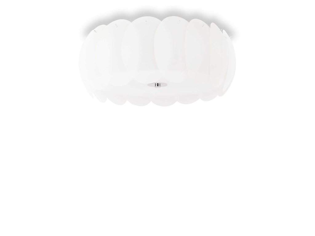 Stropné prisadené svietidlo Ovalino z kolekcie interiérového osvetlenia značky Ideal Lux v modernom prevedení je vhodné ako hlavné osvetlenie v jedálni, kuchyni či obývačke. Skladá sa z guľatej základne a rámu, ktoré sú zhotovené z kvalitného kovu s chrómovou povrchovou úpravou a sú doplnené o mohutný difúzor zložený zo zaoblených kruhových tabúľ vyrobených z matne bieleho skla leptaného kyselinou. Svietidlo je osadené päticami E27 pre žiarovky s maximálnym príkonom 8 x 60 W. Zdroje nie sú súčasťou balenia. Odporúčame zvoliť LED žiarovky na úsporu elektrickej energie. Krytie IP20 je vhodné pre vnútornú inštaláciu. Celkové rozmery svietidla sú 20 x 52 x 52 cm. Je určené na napájanie zo siete na 220-240 V a vzťahuje sa naň predĺžená záruka 5 rokov.Dodatočné parametre