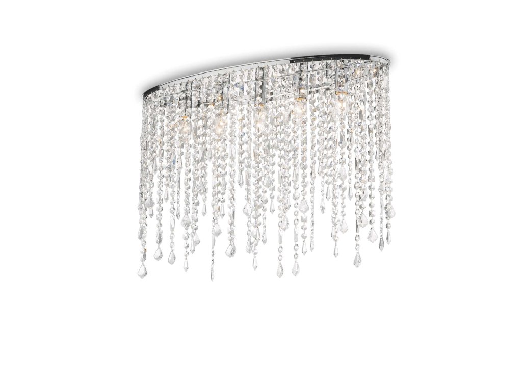 Stropné prisadené svietidlo Rain značky Ideal Lux v luxusnom krištáľovom prevedení o dĺžke 69 cm ponúkne ideálne osvetlenie obývacej izby, spálne či kuchyne. Základňa svietidla je zhotovená z kvalitného kovu s lesklo chrómovou povrchovou úpravou. Dizajn doplňujú číre prívesky zložené z viactvarých brúsených krištáľových korálikov a zakončené kvapkami. Svietidlo je osadené päticami E14 pre žiarovky s maximálnym príkonom 5 x 40 W. Žiarovky nie sú súčasťou balenia. Odporúčame zvoliť LED žiarovky, ktoré šetria elektrickú energiu. Krytie IP20 je vhodné na použitie do interiéru. Celkové rozmery svietidla sú 49 x 69 x 24 cm. Je určené na napájanie zo siete na 220-240 V a vzťahuje sa naň predĺžená záruka 5 rokov.Dodatočné parametre