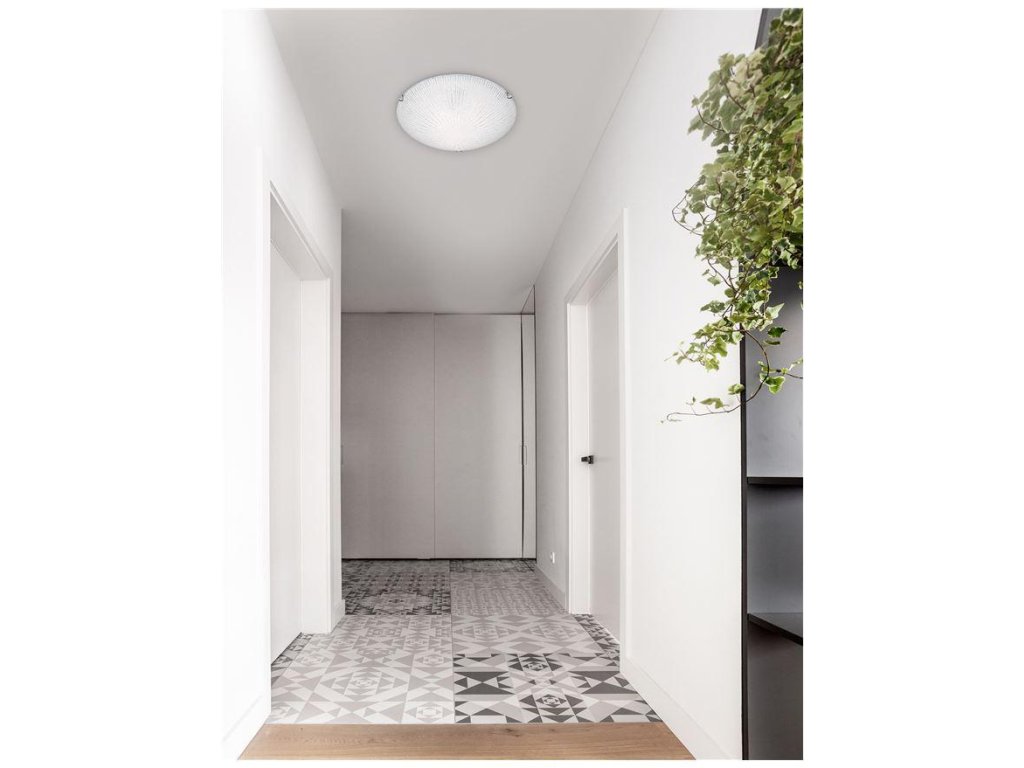 Stropné svietidlo SHELL biela a číre štruktúrované sklo E27 2x12W