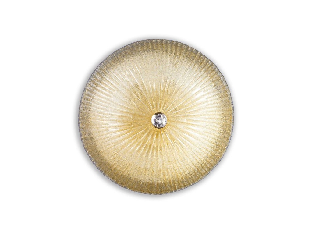 Stropné a nástenné svietidlo Shell PL6 Ambra z kolekcie Ideal Lux v klasickom štýle sa pre svoj vzhľad hodí do hotelových izieb. Jeho difúzor je vyrobený z číreho trblietavého skla s jantárovou povrchovou úpravou a je doplnený o zlaté detaily. S krytím IP20 sa jedná o interiérové svietidlo, ktoré je osadené päticou E27 s maximálnym príkonom 6 x 60W. Žiarovky nie sú súčasťou balenia, ale odporúčame použiť LED žiarovky na úsporu elektrickej energie.Dodatočné parametre