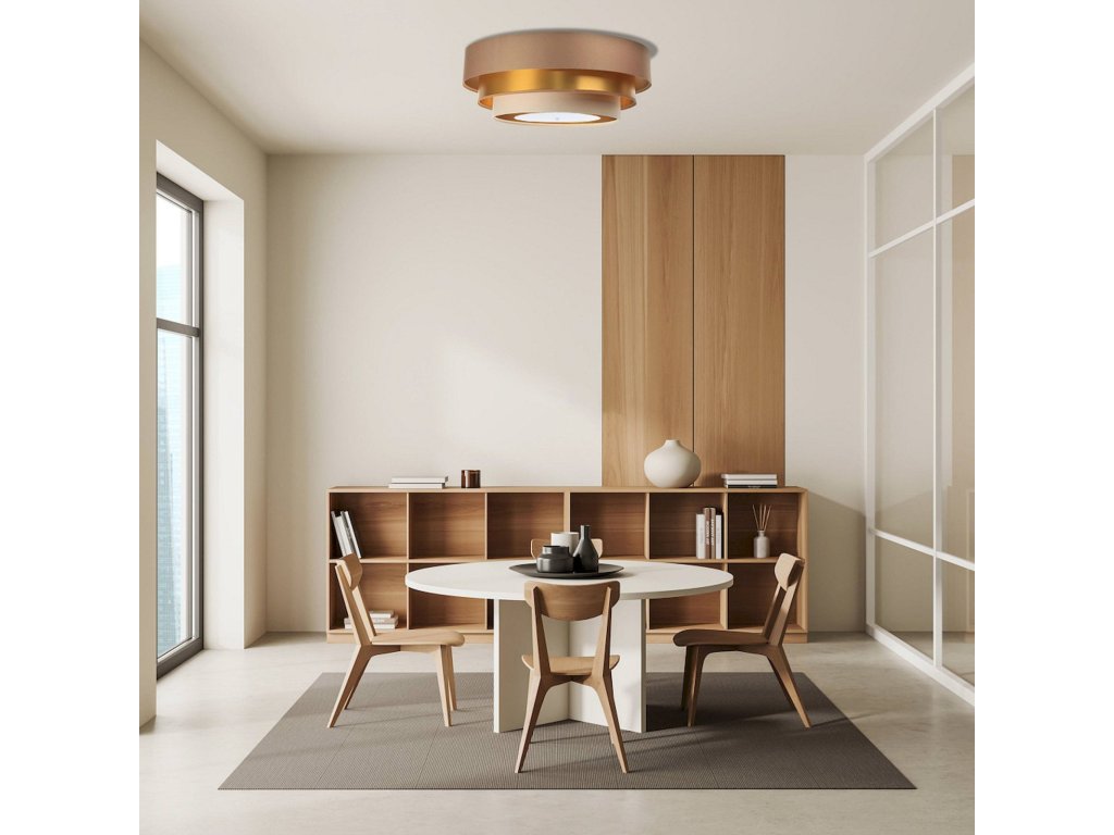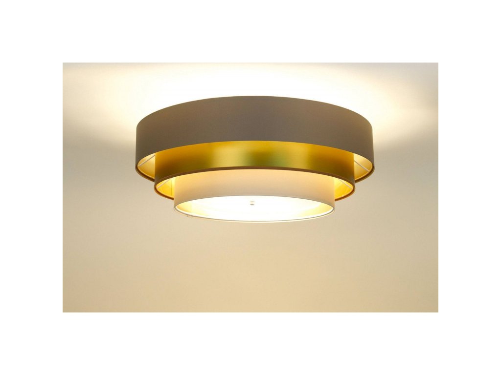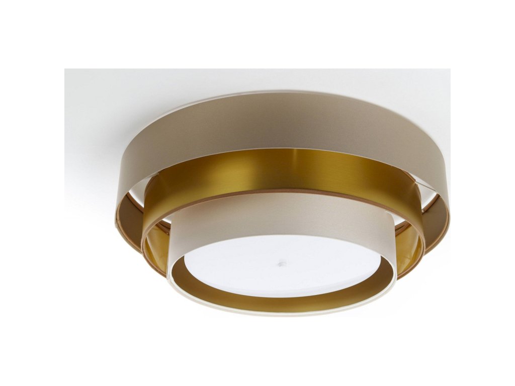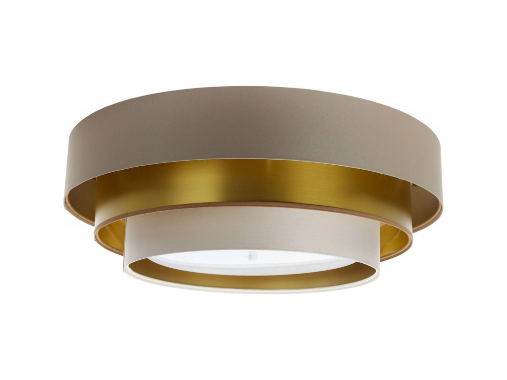 Stropné svietidlo TRINITY v béžovej farbe v kombinácii so zlatou a krémovou farbou. Tienidlo je odolné voči UV žiareniu, takže tkanina počas používania nevybledne. Priemer svietidla je 60 cm. Skvele sa hodí do obývacej izby či spálne.
