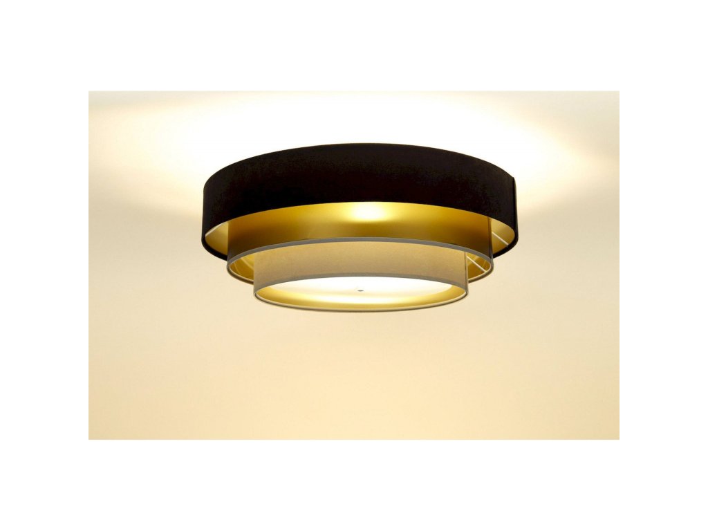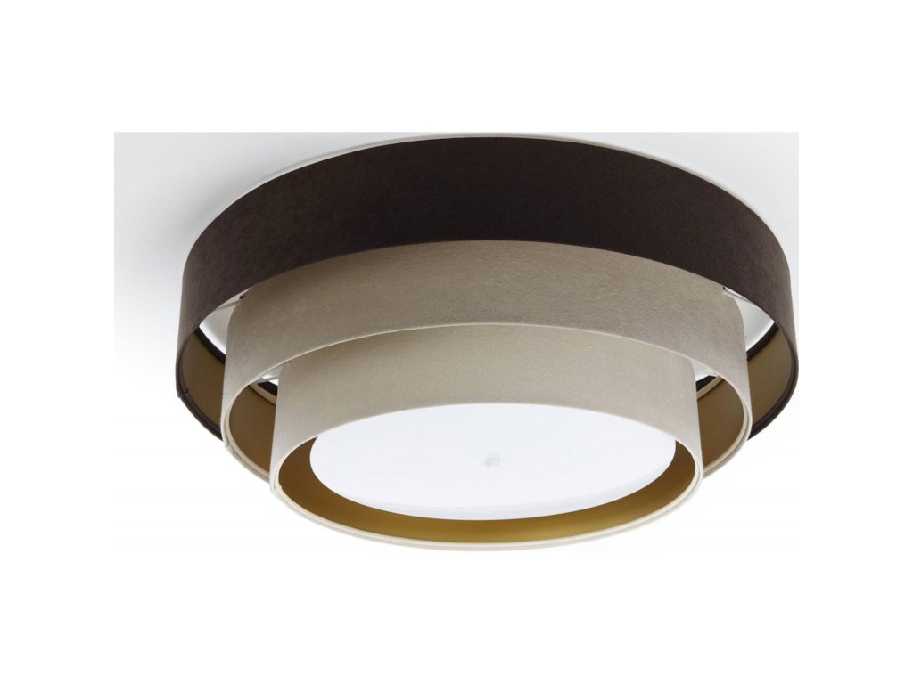 Stropné svietidlo TRINITY v dvoch farebných variantoch - béžovo-zlatá a zlato-krémová. Tienidlo je odolné voči UV žiareniu, takže tkanina počas používania nevybledne. Priemer svietidla je 60 cm. Skvele sa hodí do obývacej izby či spálne.