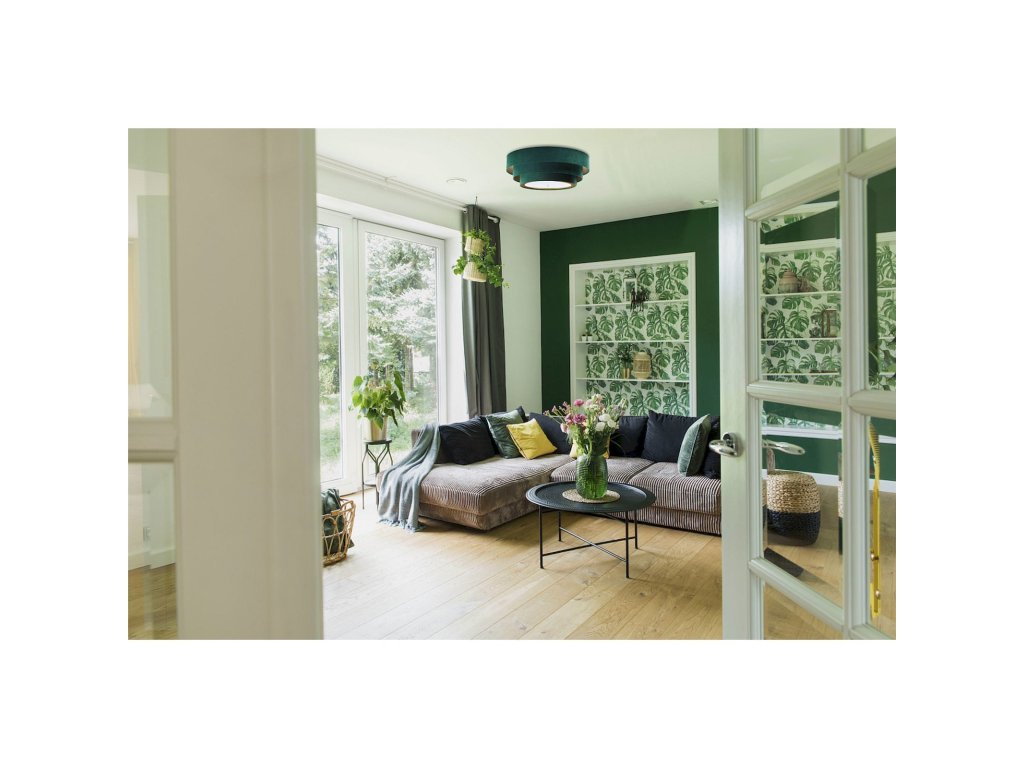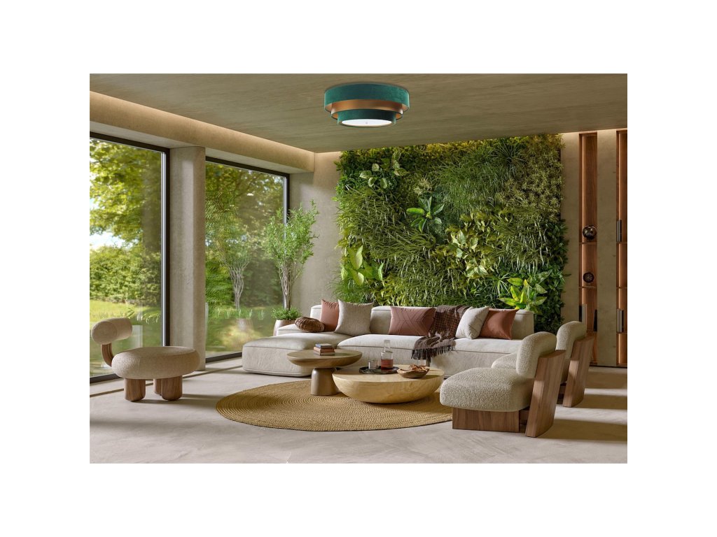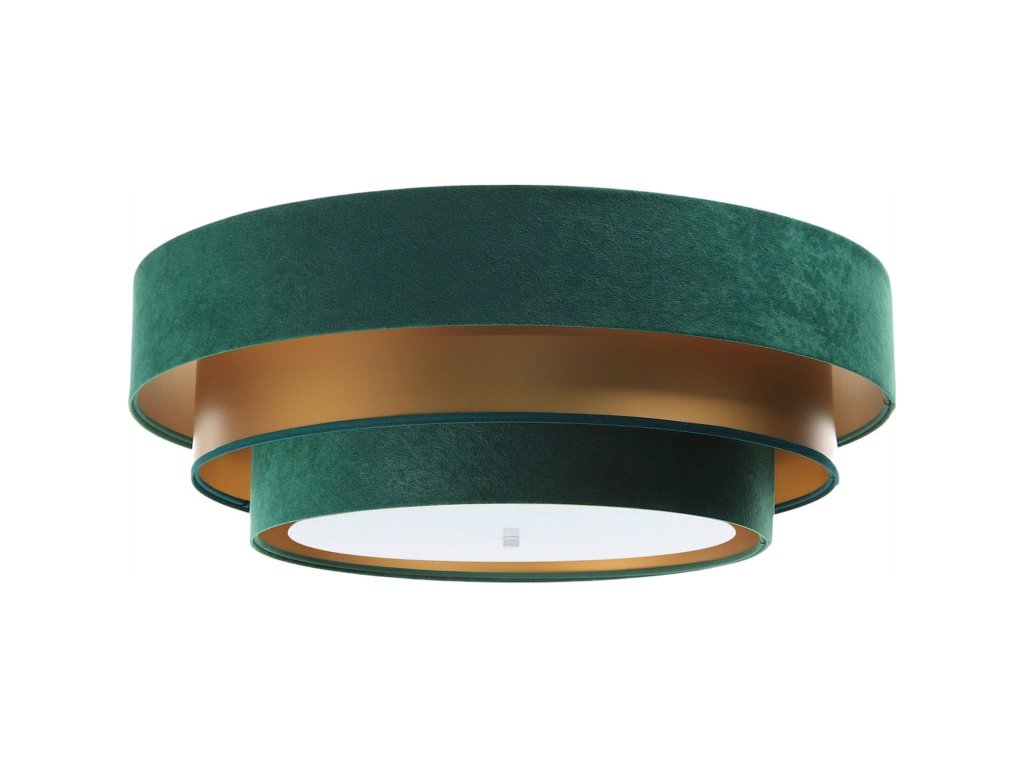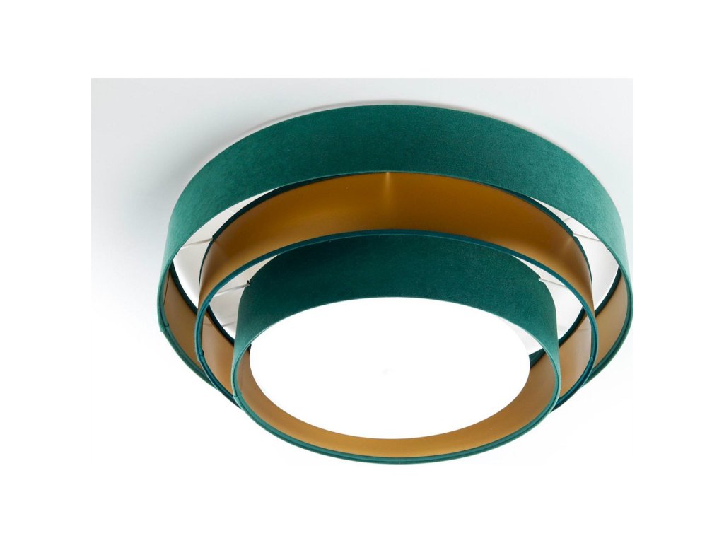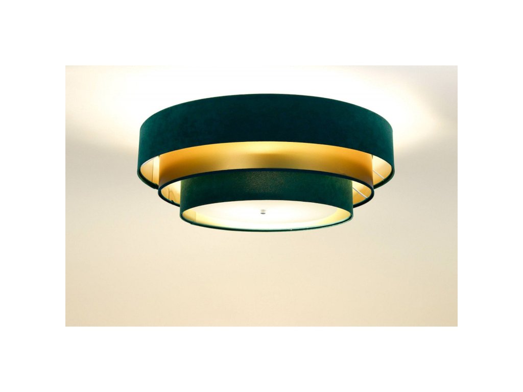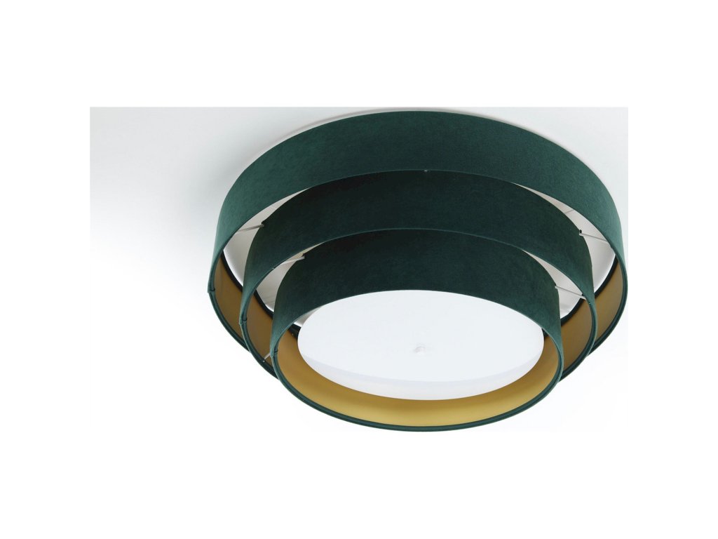 Stropné svietidlo TRINITY v troch farebných variantoch - svetlo-zelená, tmavo-zelená a zeleno-zlatá. Tienidlo je odolné voči UV žiareniu, takže tkanina počas používania nevybledne. Priemer svietidla je 60 cm. Skvele sa hodí do obývacej izby či spálne.