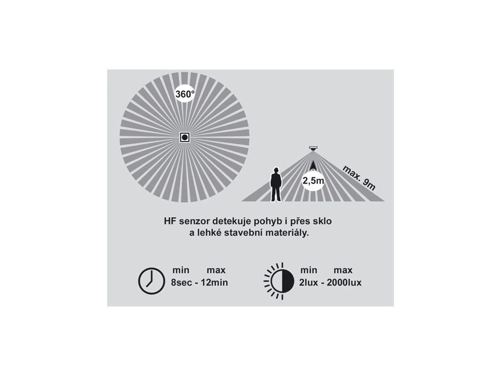 - Stropné a nástenné svietidlo DARINA LED 12W so senzorom pohybu s 360 stupňovým uhlom detekcie pohybu.