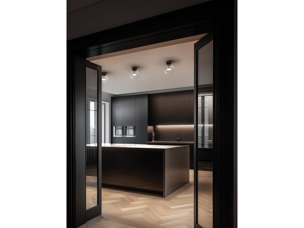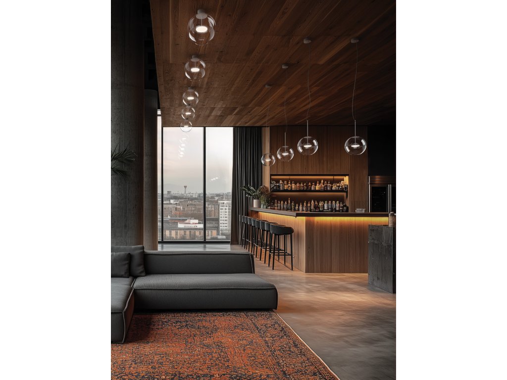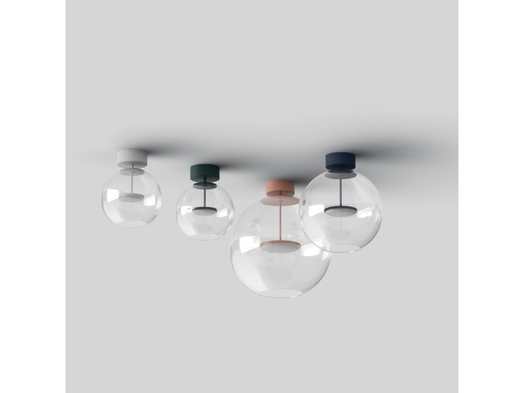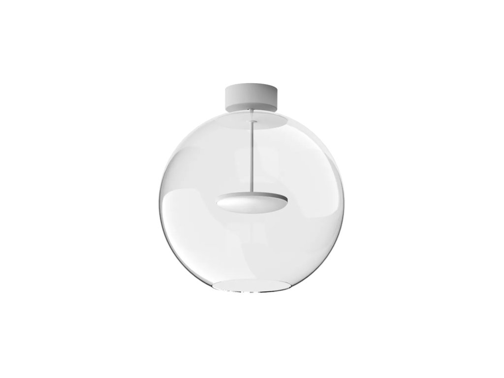 Hlavním prvkem designu je průhledný sférický skleněný difuzor, který přináší vizuální lehkost a optimální světelný výkon, zdůrazňuje čistotu světla a vytváří elegantní, přirozené odrazy.