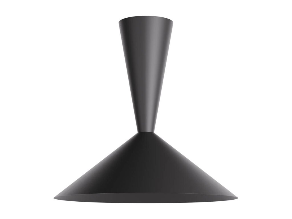 Stropné svietidlo pre interiér, hliníková konštrukcia a hliníkový difúzor v matnej čiernej farbe.
