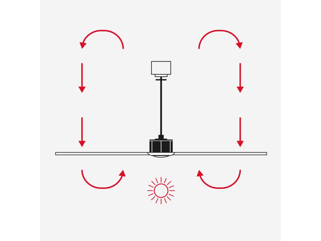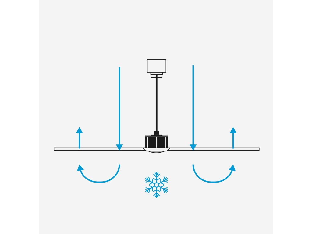 Vďaka funkcii spätného chodu môžete zmeniť smer lopatiek ventilátora a používať ho v lete aj v zime. V lete pomôže dosiahnuť chladnú atmosféru av zime zlepší účinnosť vykurovacieho systému tým, že nechá cirkulovať horúci vzduch, ktorý sa bežne hromadí pri strope.