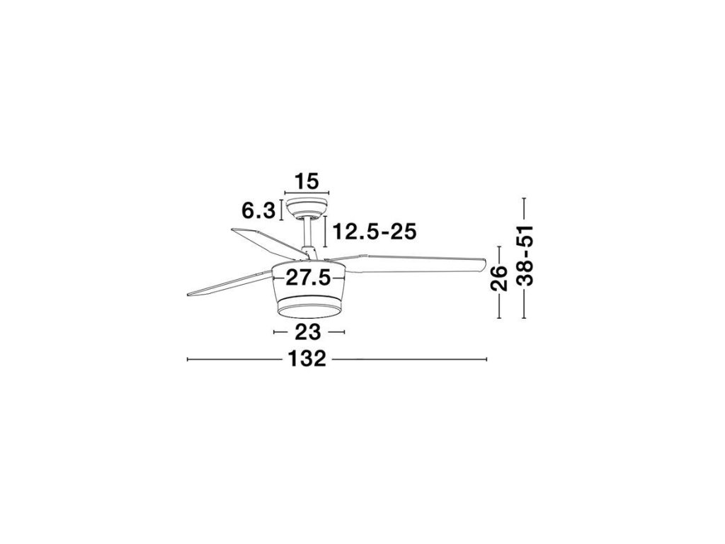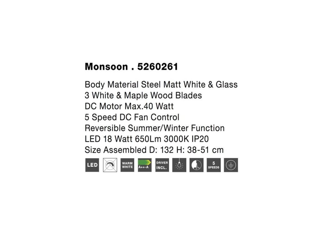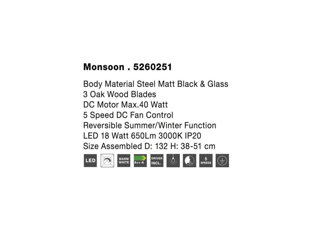 Stropný ventilátor so svetlom MONSOON telo z ocele, 3ABS drevené listy LED 18W 3000K