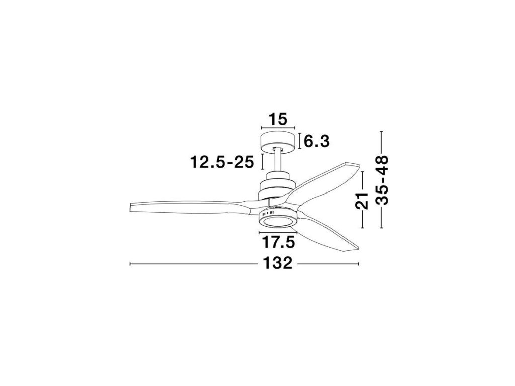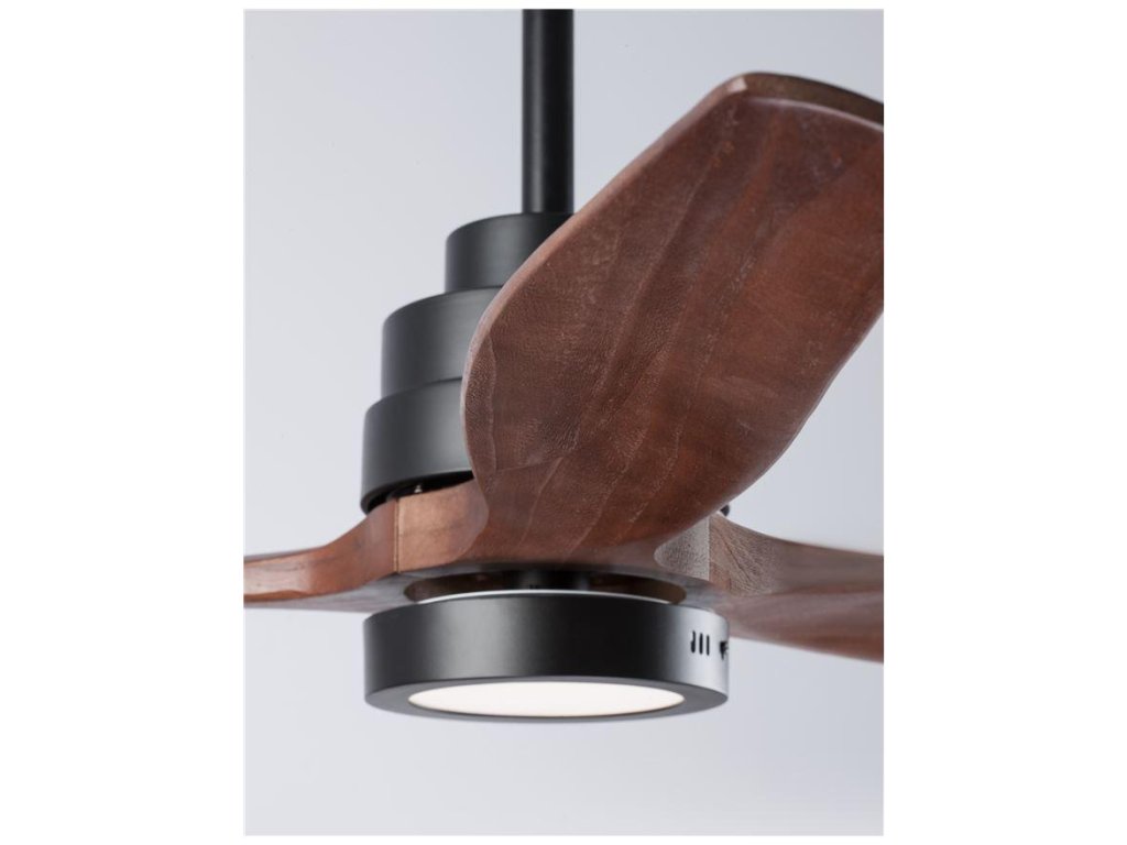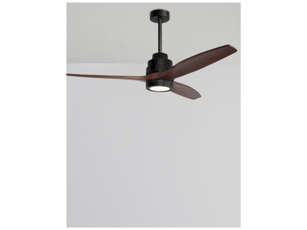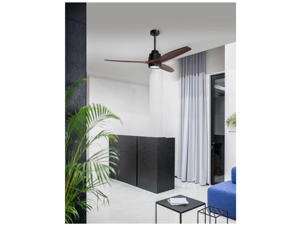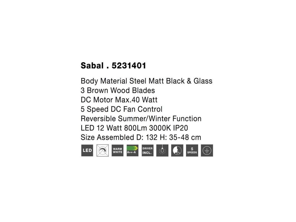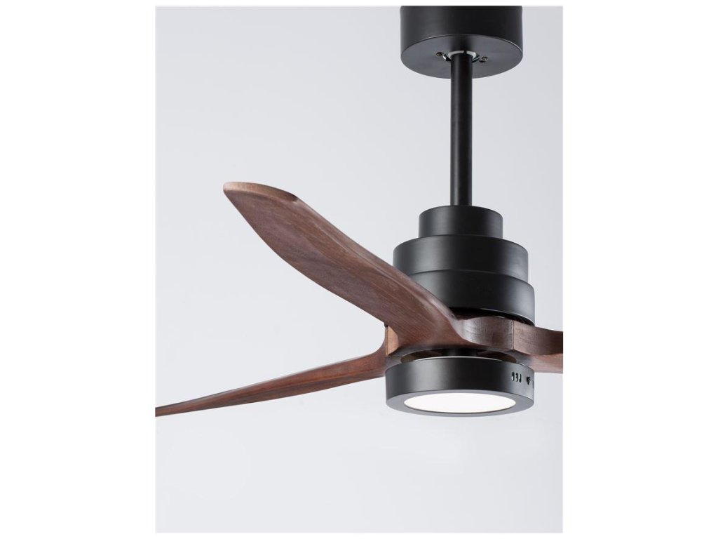 Stropný ventilátor so svetlom SABAL telo z ocele matná čierna a sklo 3ABS drevené listy 12W 3000K