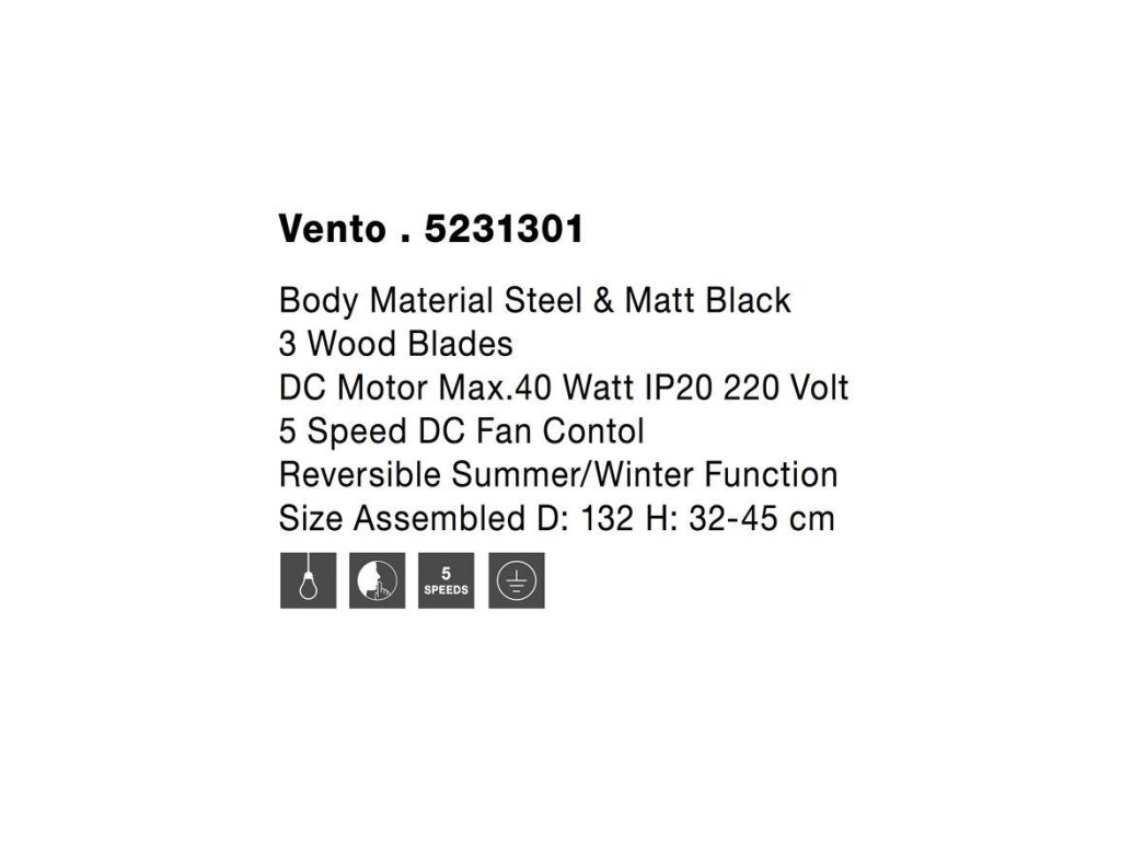 Stropný ventilátor VENTO telo z ocele čierna a drevené listy