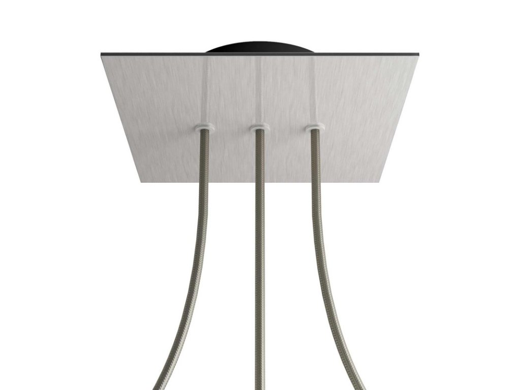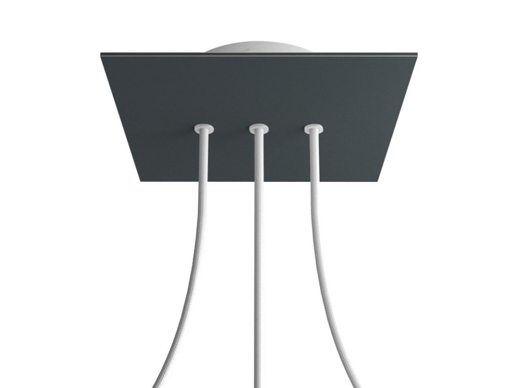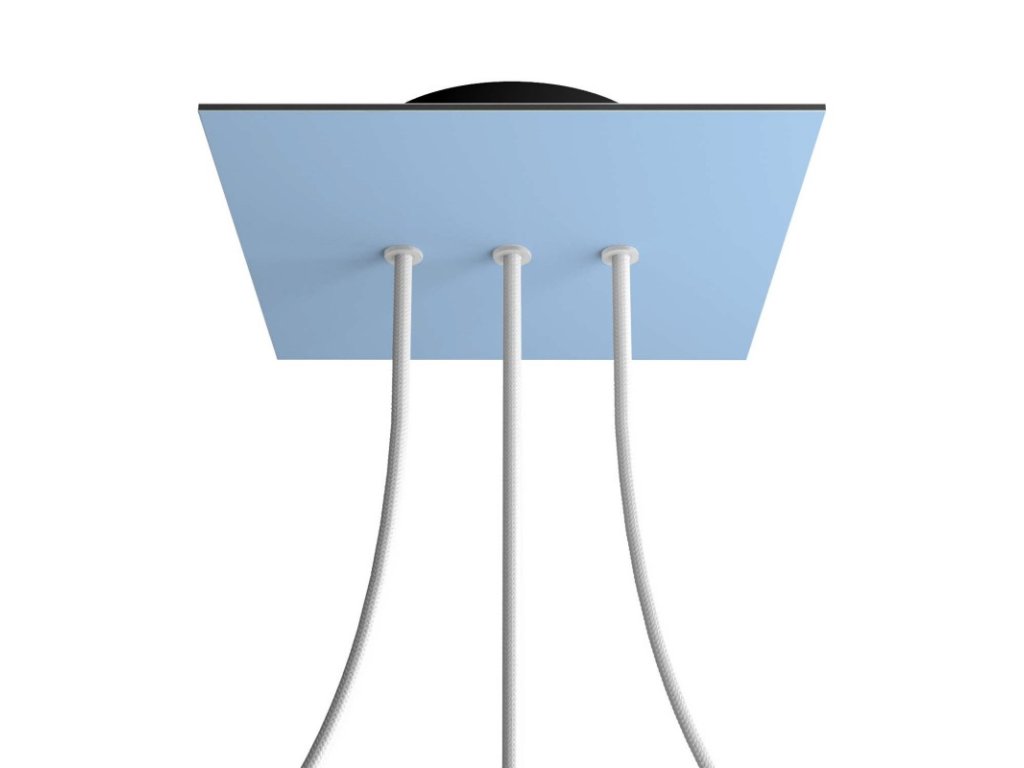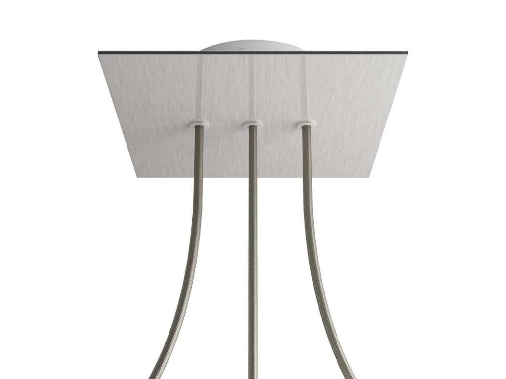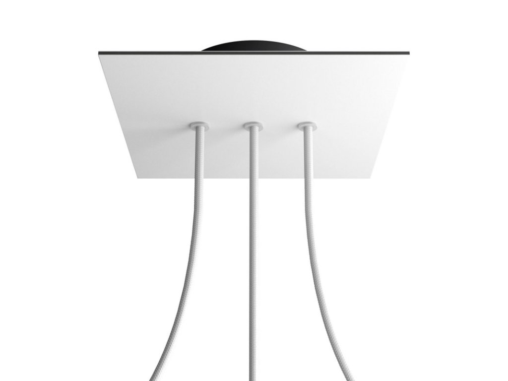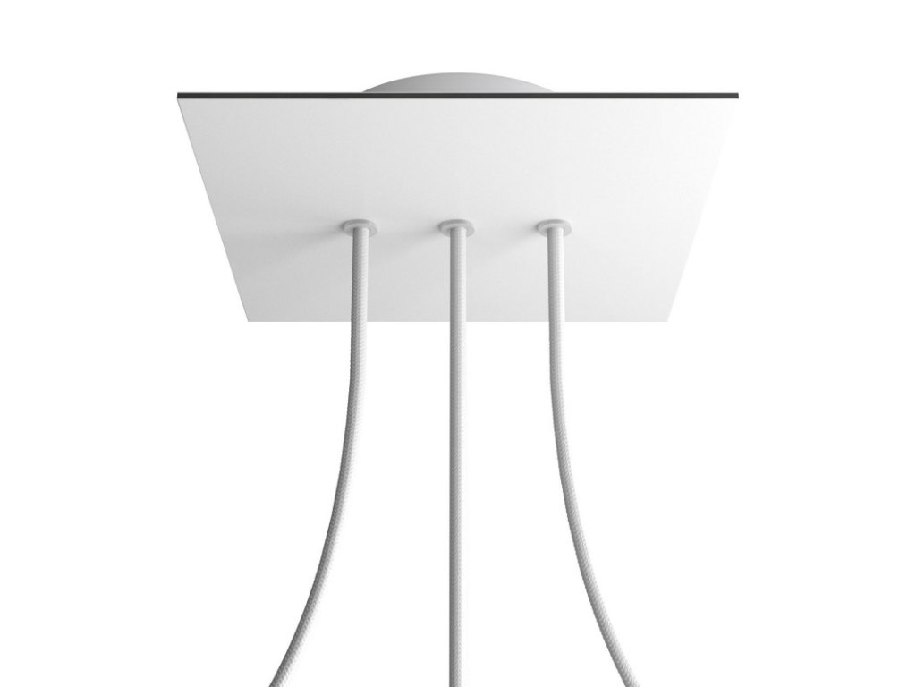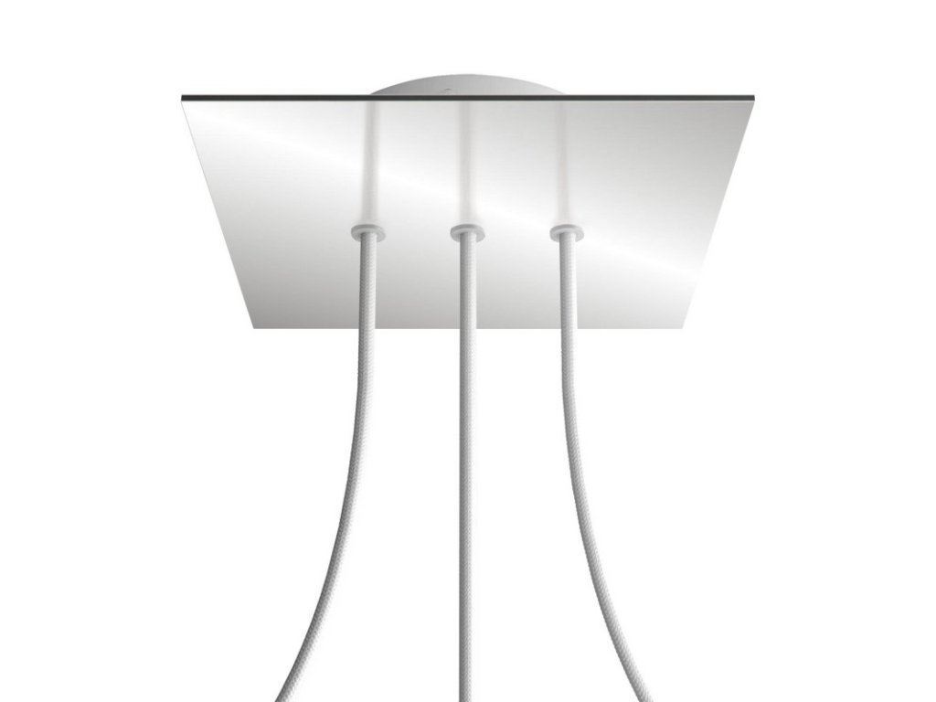 Štvorcový stropný baldachýn z edície Rose-One System predstavuje exkluzívne riešenie z dielne Creative-Cables, vďaka ktorému budú Vaše svietidlá vyzerať ešte dokonalejšie. Tento štvorcový stropný baldachýn Rose-One System s priemerom 200 mm a 3 otvormi vedľa seba je zostavený z menšieho kovového stropného baldachýnu, na ktorý sa pomocou káblových priechodiek pripevní štvorcová platňa s farebným alebo obrazovým motívom s priemerom 200 mm. Vďaka tejto jednoduchej myšlienke budete mať oveľa väčšiu slobodu pri realizácii vlastných svetelných inštalácií. V ponuke si môžete vybrať hneď z niekoľkých sviežich farebných motívov a vzorov, ktoré sme pre vás pripravili. Prajeme vám veľa zábavy! Štvorcový stropný baldachýn Rose-One System s dĺžkou hrany 200 mm.
