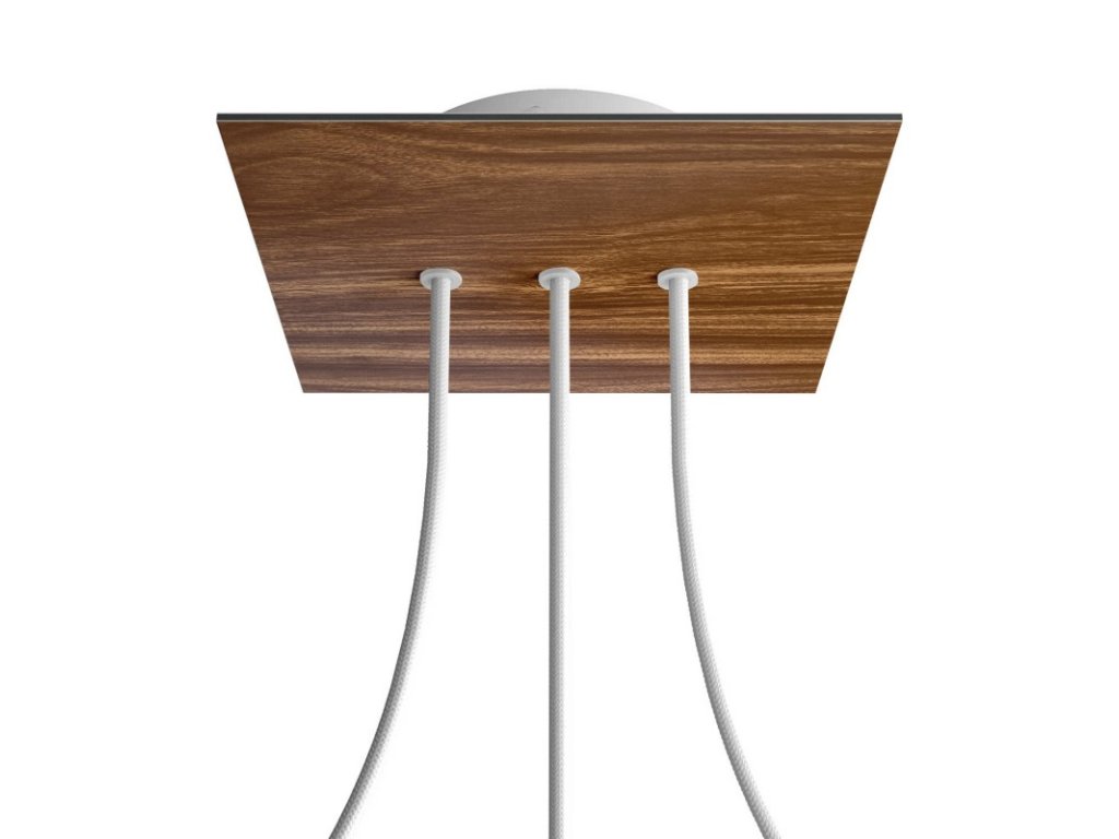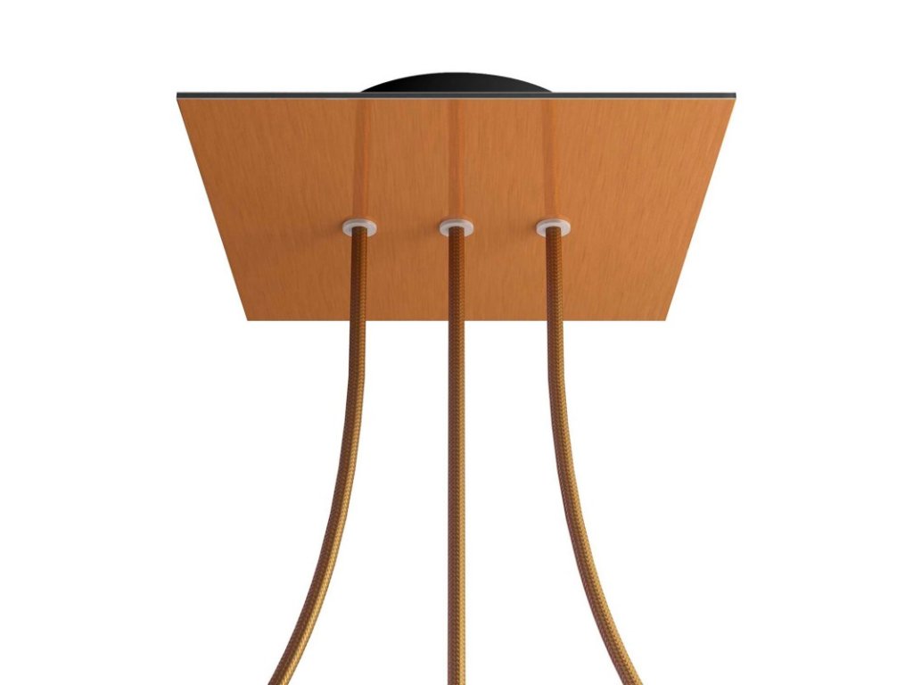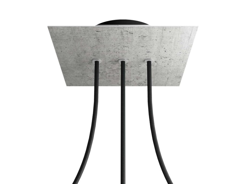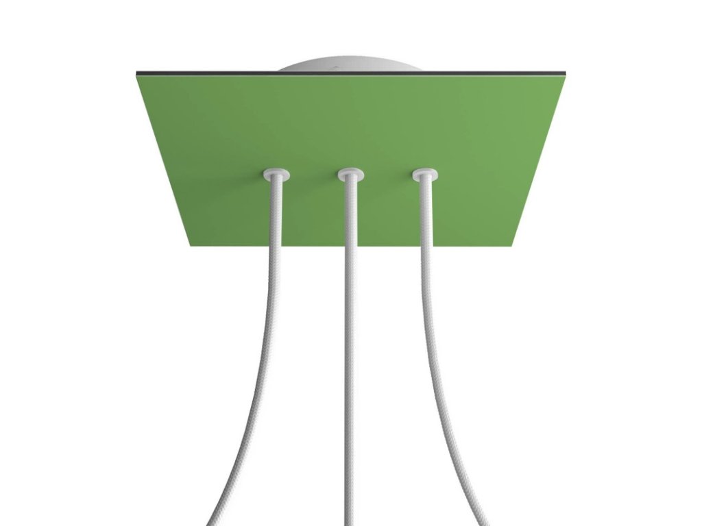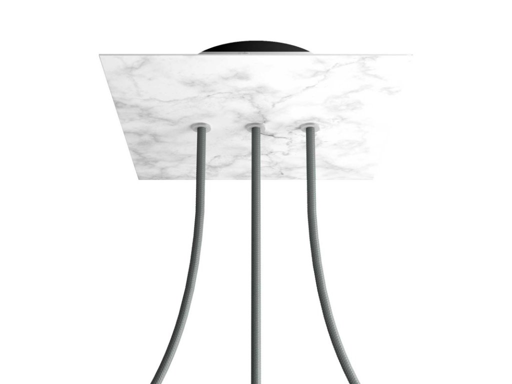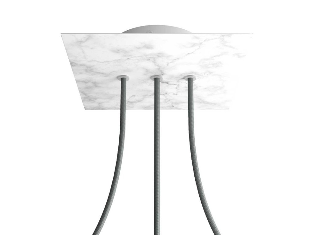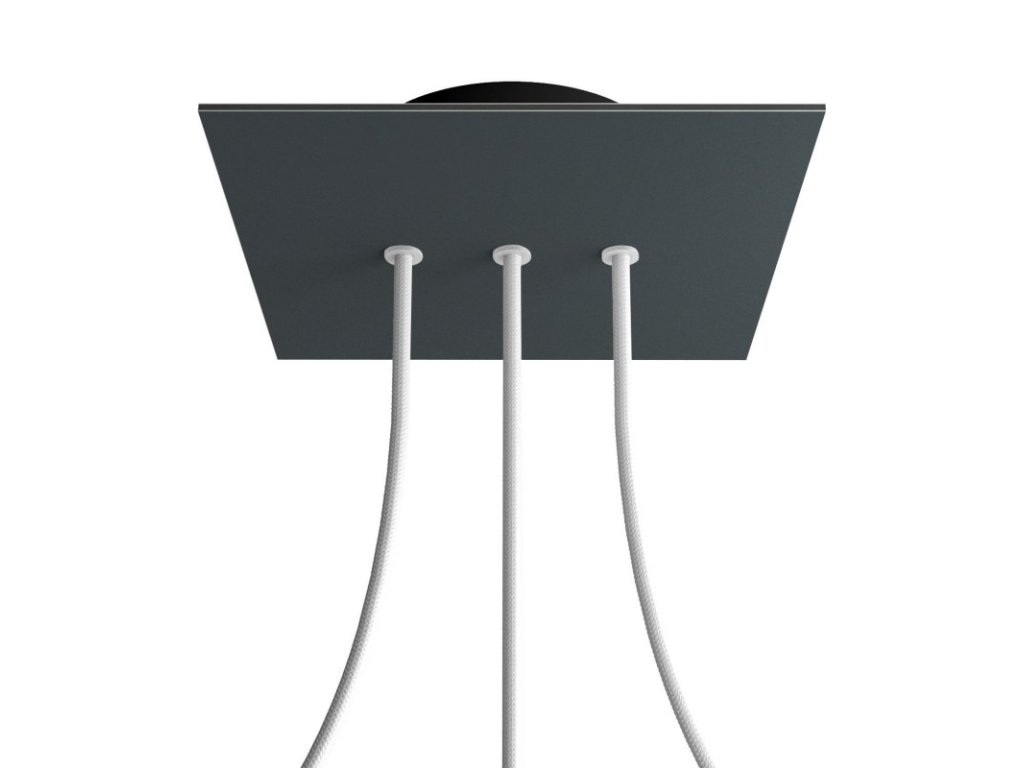 Štvorcový stropný baldachýn z edície Rose-One System predstavuje exkluzívne riešenie z dielne Creative-Cables, vďaka ktorému budú Vaše svietidlá vyzerať ešte dokonalejšie. Tento štvorcový stropný baldachýn Rose-One System s priemerom 200 mm a 3 otvormi vedľa seba je zostavený z menšieho kovového stropného baldachýnu, na ktorý sa pomocou káblových priechodiek pripevní štvorcová platňa s farebným alebo obrazovým motívom s priemerom 200 mm. Vďaka tejto jednoduchej myšlienke budete mať oveľa väčšiu slobodu pri realizácii vlastných svetelných inštalácií. V ponuke si môžete vybrať hneď z niekoľkých sviežich farebných motívov a vzorov, ktoré sme pre vás pripravili. Prajeme vám veľa zábavy! Štvorcový stropný baldachýn Rose-One System s dĺžkou hrany 200 mm.