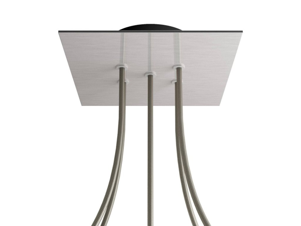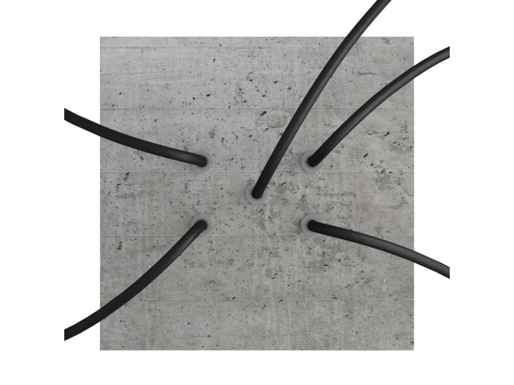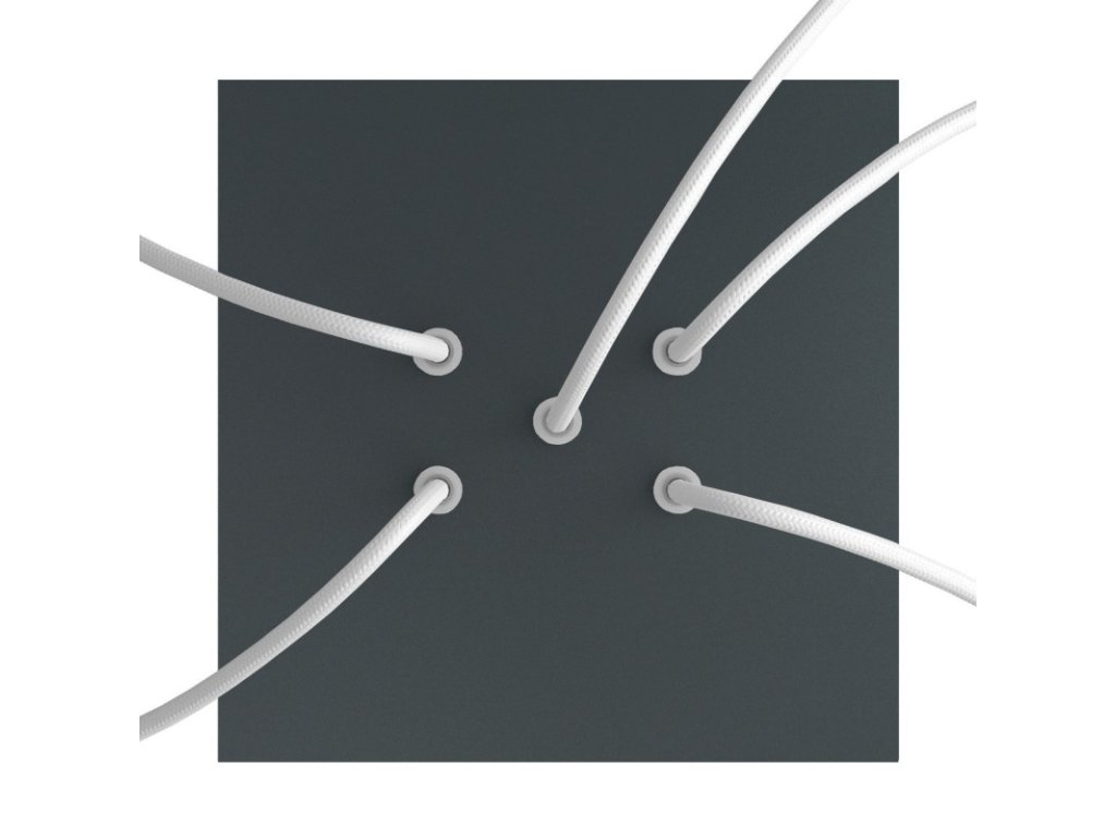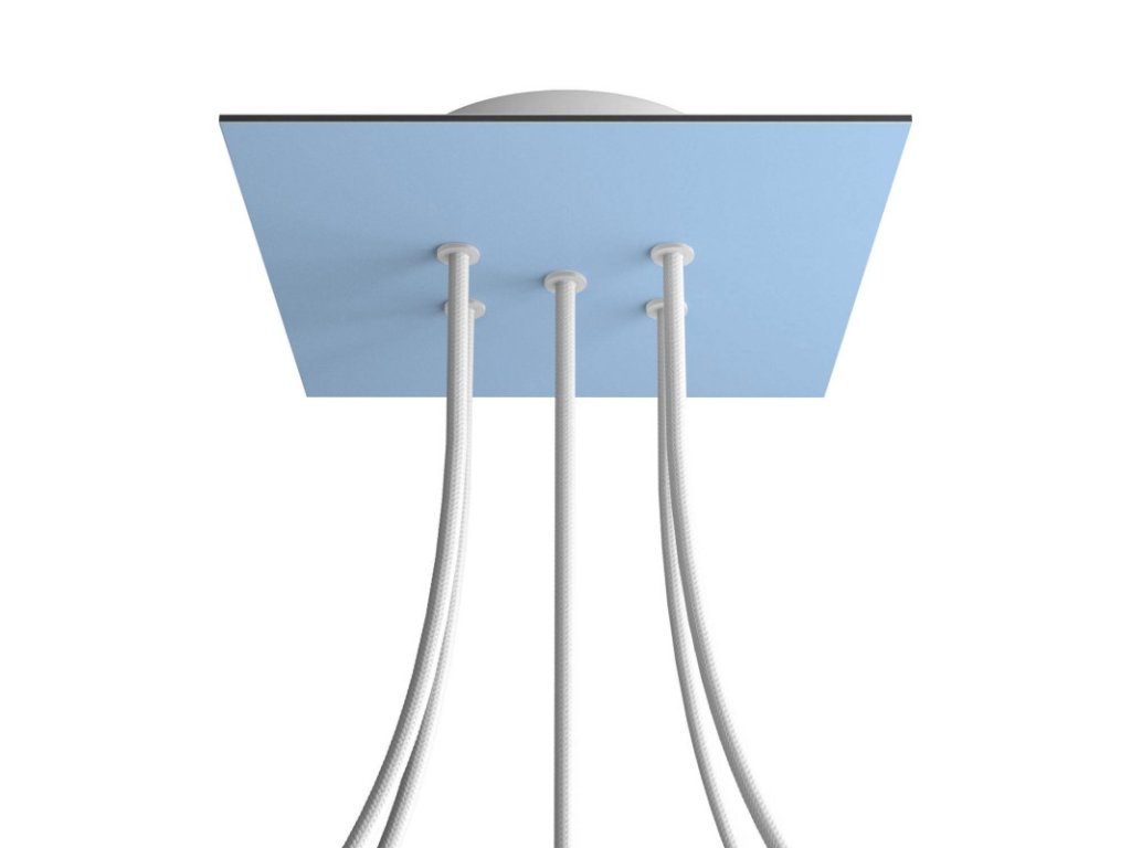 Štvorcový stropný baldachýn z edície Rose-One System predstavuje exkluzívne riešenie z dielne Creative-Cables, vďaka ktorému budú Vaše svietidlá vyzerať ešte dokonalejšie. Tento štvorcový stropný baldachýn Rose-One System s priemerom 200 mm a 5 otvormi je zostavený z menšieho kovového stropného baldachýnu, na ktorý sa pomocou káblových priechodiek pripevní štvorcová platňa s farebným alebo obrazovým motívom s priemerom 200 mm. Vďaka tejto jednoduchej myšlienke budete mať oveľa väčšiu slobodu pri realizácii vlastných svetelných inštalácií. V ponuke si môžete vybrať hneď z niekoľkých sviežich farebných motívov a vzorov, ktoré sme pre vás pripravili. Prajeme vám veľa zábavy! Štvorcový stropný baldachýn Rose-One System s dĺžkou hrany 200 mm.