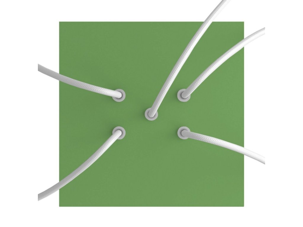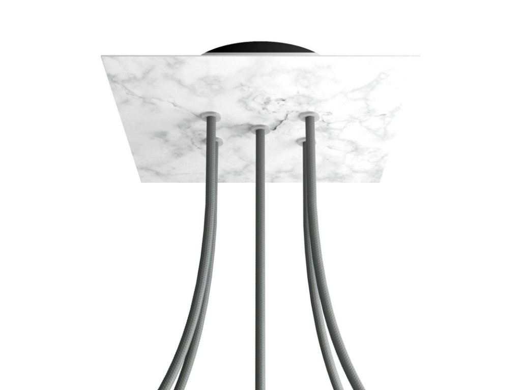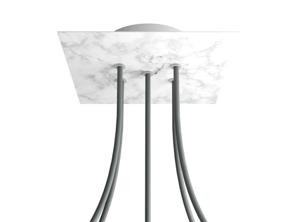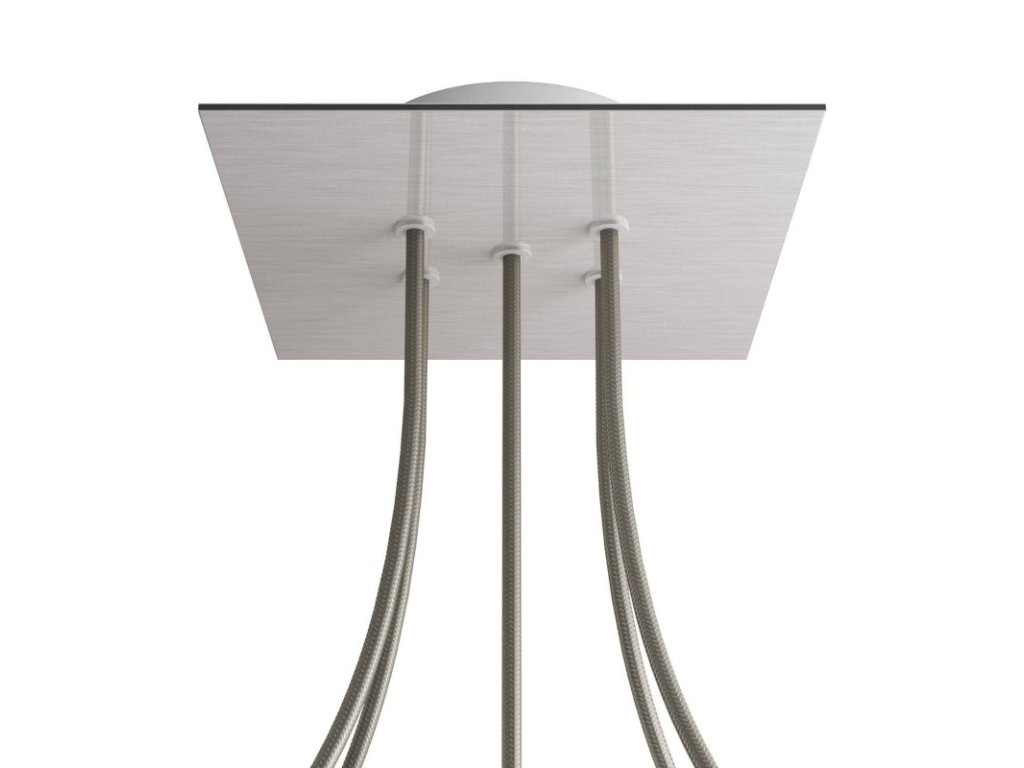 Štvorcový stropný baldachýn z edície Rose-One System predstavuje exkluzívne riešenie z dielne Creative-Cables, vďaka ktorému budú Vaše svietidlá vyzerať ešte dokonalejšie. Tento štvorcový stropný baldachýn Rose-One System s priemerom 200 mm a 5 otvormi je zostavený z menšieho kovového stropného baldachýnu, na ktorý sa pomocou káblových priechodiek pripevní štvorcová platňa s farebným alebo obrazovým motívom s priemerom 200 mm. Vďaka tejto jednoduchej myšlienke budete mať oveľa väčšiu slobodu pri realizácii vlastných svetelných inštalácií. V ponuke si môžete vybrať hneď z niekoľkých sviežich farebných motívov a vzorov, ktoré sme pre vás pripravili. Prajeme vám veľa zábavy! Štvorcový stropný baldachýn Rose-One System s dĺžkou hrany 200 mm.
