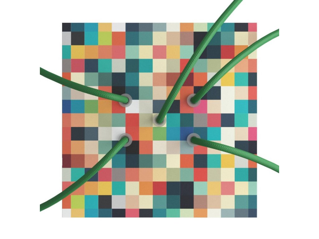 Štvorcový stropný baldachýn z edície Rose-One System predstavuje exkluzívne riešenie z dielne Creative-Cables, vďaka ktorému budú Vaše svietidlá vyzerať ešte dokonalejšie. Tento štvorcový stropný baldachýn Rose-One System s priemerom 200 mm a 5 otvormi je zostavený z menšieho kovového stropného baldachýnu, na ktorý sa pomocou káblových priechodiek pripevní štvorcová platňa s farebným alebo obrazovým motívom s priemerom 200 mm. Vďaka tejto jednoduchej myšlienke budete mať oveľa väčšiu slobodu pri realizácii vlastných svetelných inštalácií. V ponuke si môžete vybrať hneď z niekoľkých sviežich farebných motívov a vzorov, ktoré sme pre vás pripravili. Prajeme vám veľa zábavy! Štvorcový stropný baldachýn Rose-One System s dĺžkou hrany 200 mm.