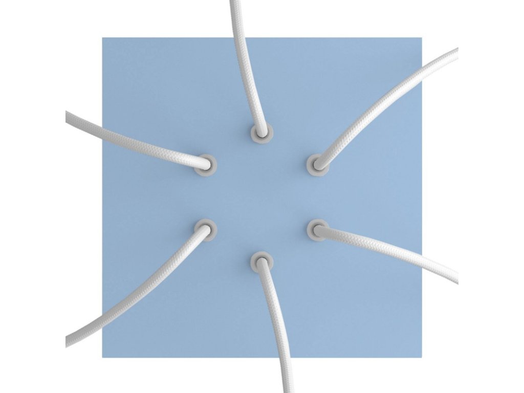 Štvorcový stropný baldachýn z edície Rose-One System predstavuje exkluzívne riešenie z dielne Creative-Cables, vďaka ktorému budú Vaše svietidlá vyzerať ešte dokonalejšie. Tento štvorcový stropný baldachýn Rose-One System s priemerom 200 mm a 6 otvormi je zostavený z menšieho kovového stropného baldachýnu, na ktorý sa pomocou káblových priechodiek pripevní štvorcová platňa s farebným alebo obrazovým motívom s priemerom 200 mm. Vďaka tejto jednoduchej myšlienke budete mať oveľa väčšiu slobodu pri realizácii vlastných svetelných inštalácií. V ponuke si môžete vybrať hneď z niekoľkých sviežich farebných motívov a vzorov, ktoré sme pre vás pripravili. Prajeme vám veľa zábavy! Štvorcový stropný baldachýn Rose-One System s dĺžkou hrany 200 mm.