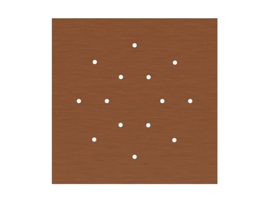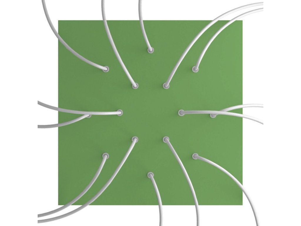 Štvorcový stropný baldachýn z edície Rose-One System predstavuje exkluzívne riešenie z dielne Creative-Cables, vďaka ktorému budú Vaše svietidlá vyzerať ešte dokonalejšie. Tento štvorcový stropný baldachýn Rose-One System s priemerom 400 mm a 14 otvormi je zostavený z menšieho kovového stropného baldachýnu, na ktorý sa pomocou káblových priechodiek pripevní štvorcová platňa s farebným alebo obrazovým motívom s priemerom 400 mm. Vďaka tejto jednoduchej myšlienke budete mať oveľa väčšiu slobodu pri realizácii vlastných svetelných inštalácií. V ponuke si môžete vybrať hneď z niekoľkých sviežich farebných motívov a vzorov, ktoré sme pre vás pripravili. Prajeme vám veľa zábavy! Štvorcový stropný baldachýn Rose-One System s dĺžkou hrany 400 mm.