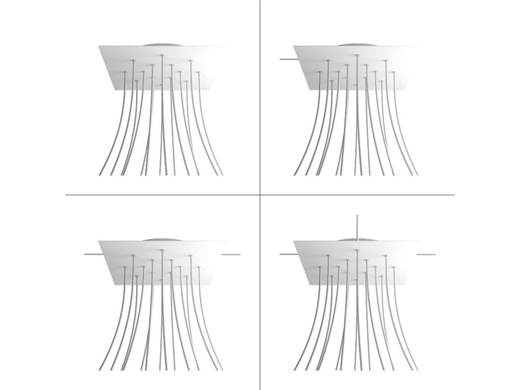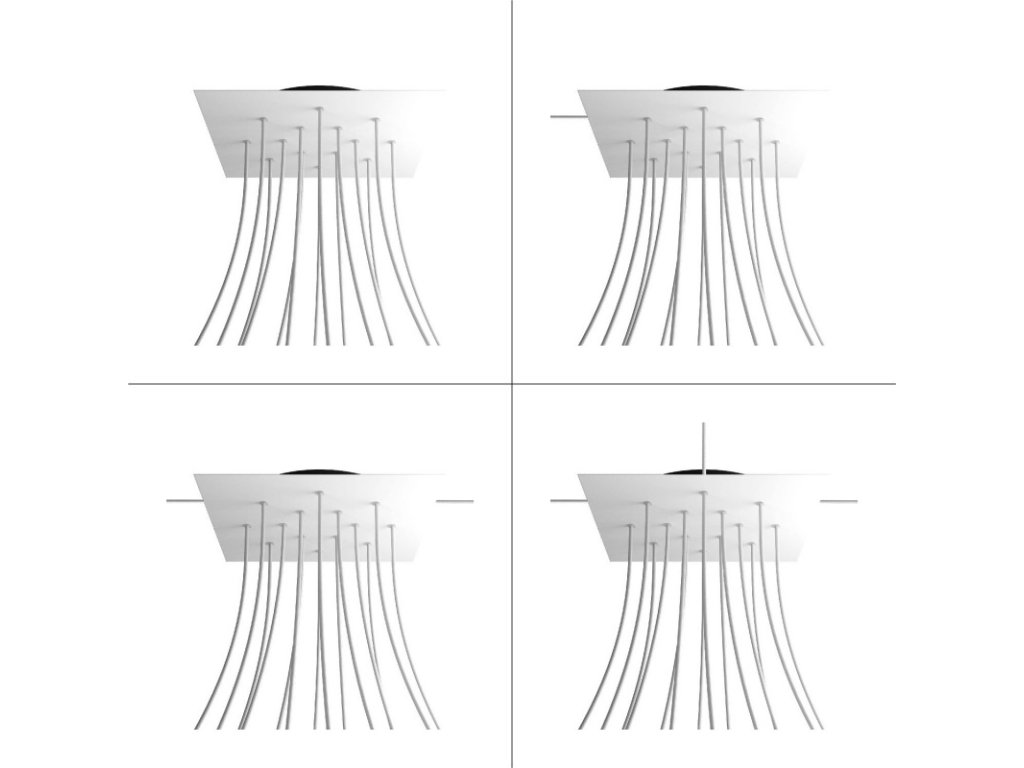Štvorcový stropný baldachýn ROSE ONE, 400 mm, 14 otvorov a 4 bočné otvory