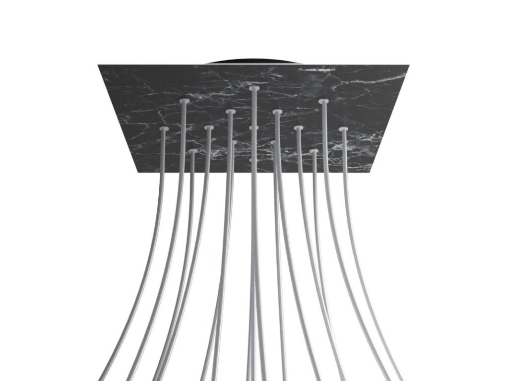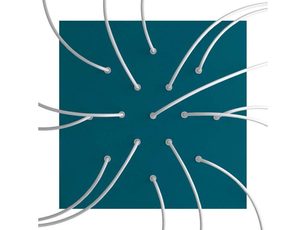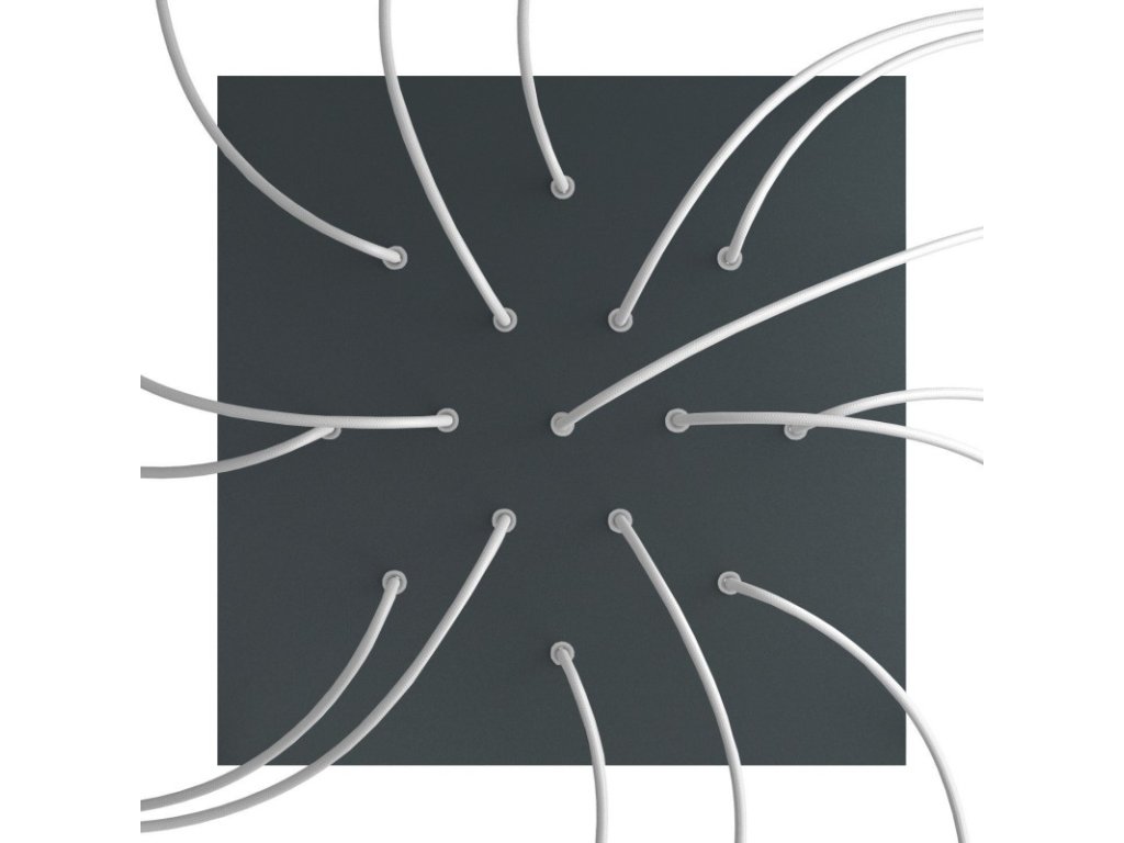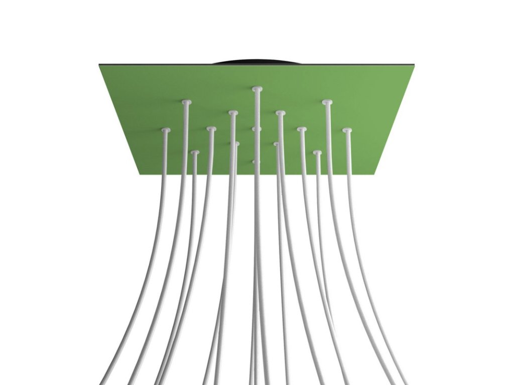 Štvorcový stropný baldachýn z edície Rose-One System predstavuje exkluzívne riešenie z dielne Creative-Cables, vďaka ktorému budú Vaše svietidlá vyzerať ešte dokonalejšie. Tento štvorcový stropný baldachýn Rose-One System s priemerom 400 mm a 15 otvormi je zostavený z menšieho kovového stropného baldachýnu, na ktorý sa pomocou káblových priechodiek pripevní štvorcová platňa s farebným alebo obrazovým motívom s priemerom 400 mm. Vďaka tejto jednoduchej myšlienke budete mať oveľa väčšiu slobodu pri realizácii vlastných svetelných inštalácií. V ponuke si môžete vybrať hneď z niekoľkých sviežich farebných motívov a vzorov, ktoré sme pre vás pripravili. Prajeme vám veľa zábavy! Štvorcový stropný baldachýn Rose-One System s dĺžkou hrany 400 mm.