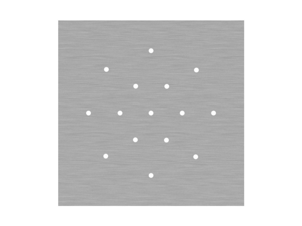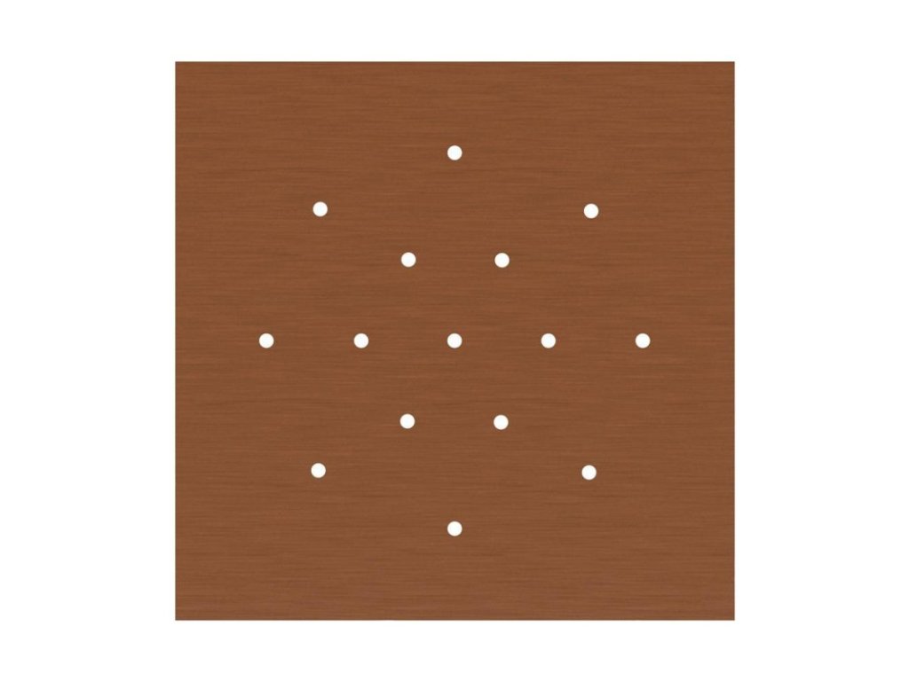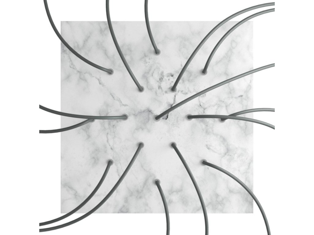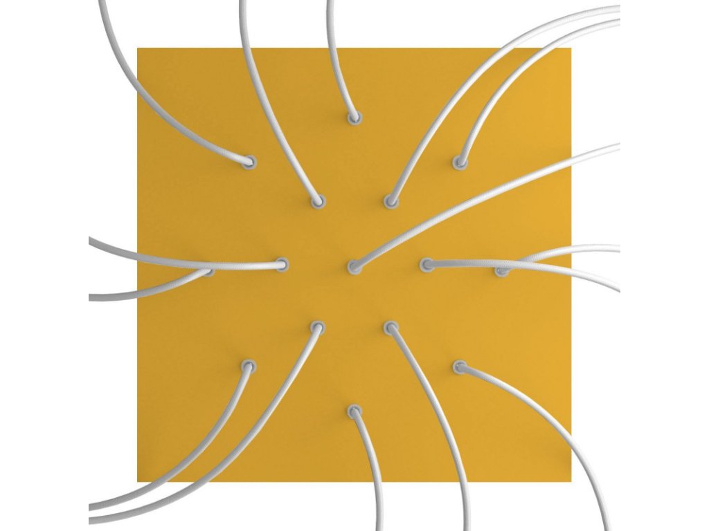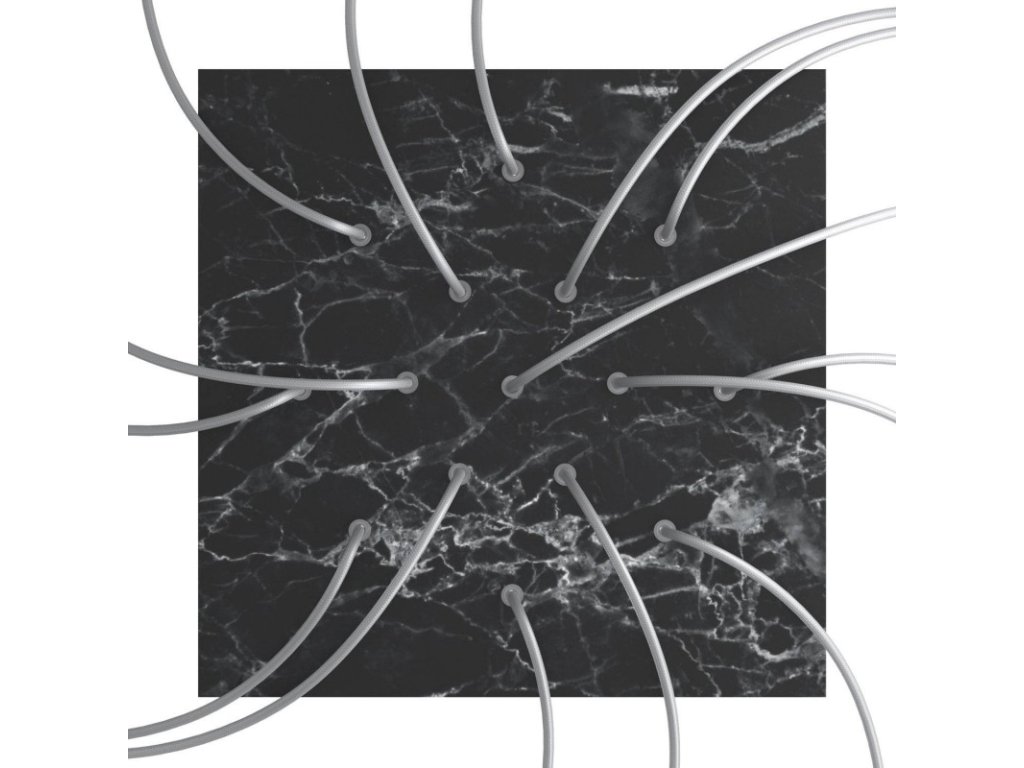 Štvorcový stropný baldachýn z edície Rose-One System predstavuje exkluzívne riešenie z dielne Creative-Cables, vďaka ktorému budú Vaše svietidlá vyzerať ešte dokonalejšie. Tento štvorcový stropný baldachýn Rose-One System s priemerom 400 mm a 15 otvormi je zostavený z menšieho kovového stropného baldachýnu, na ktorý sa pomocou káblových priechodiek pripevní štvorcová platňa s farebným alebo obrazovým motívom s priemerom 400 mm. Vďaka tejto jednoduchej myšlienke budete mať oveľa väčšiu slobodu pri realizácii vlastných svetelných inštalácií. V ponuke si môžete vybrať hneď z niekoľkých sviežich farebných motívov a vzorov, ktoré sme pre vás pripravili. Prajeme vám veľa zábavy! Štvorcový stropný baldachýn Rose-One System s dĺžkou hrany 400 mm.