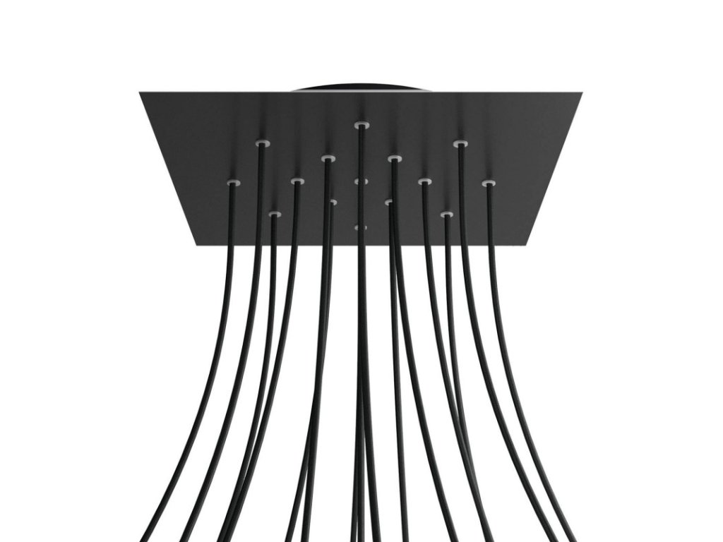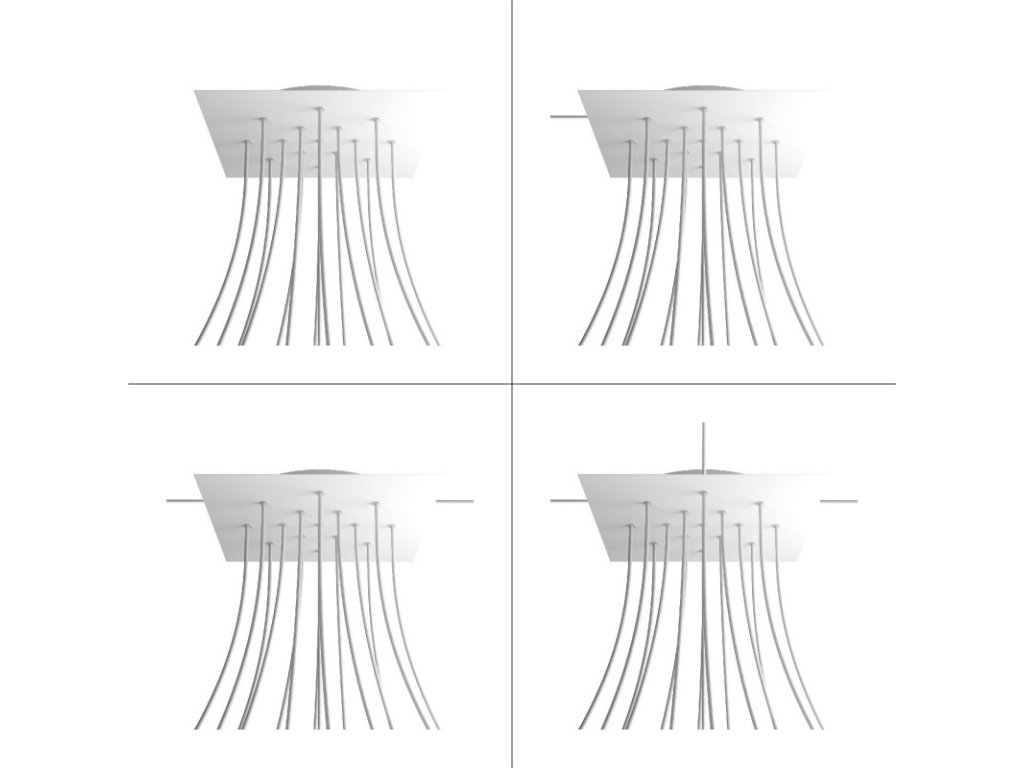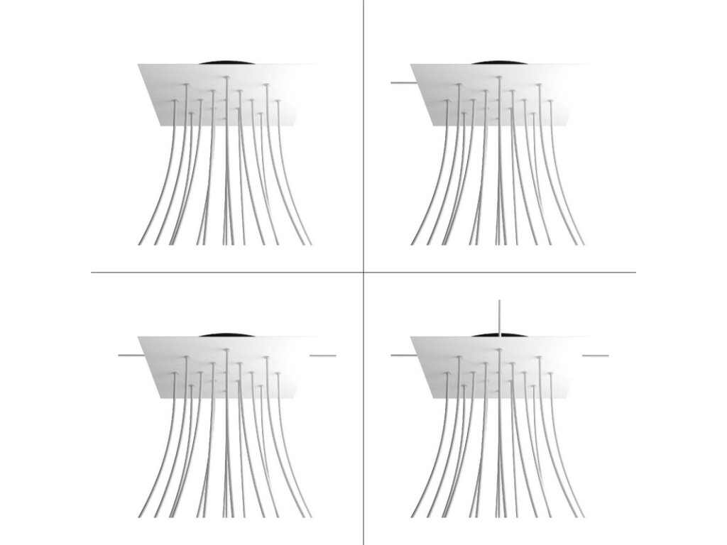 Štvorcový stropný baldachýn ROSE ONE, 400 mm, 15 otvorov a 4 bočné otvory