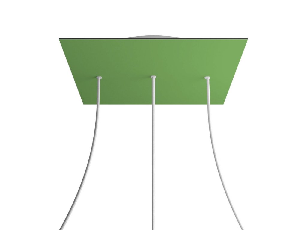 Štvorcový stropný baldachýn z edície Rose-One System predstavuje exkluzívne riešenie z dielne Creative-Cables, vďaka ktorému budú Vaše svietidlá vyzerať ešte dokonalejšie. Tento štvorcový stropný baldachýn Rose-One System s priemerom 400 mm a 3 otvormi vedľa seba je zostavený z menšieho kovového stropného baldachýnu, na ktorý sa pomocou káblových priechodiek pripevní štvorcová platňa s farebným alebo obrazovým motívom s priemerom 400 mm. Vďaka tejto jednoduchej myšlienke budete mať oveľa väčšiu slobodu pri realizácii vlastných svetelných inštalácií. V ponuke si môžete vybrať hneď z niekoľkých sviežich farebných motívov a vzorov, ktoré sme pre vás pripravili. Prajeme vám veľa zábavy! Štvorcový stropný baldachýn Rose-One System s dĺžkou hrany 400 mm.