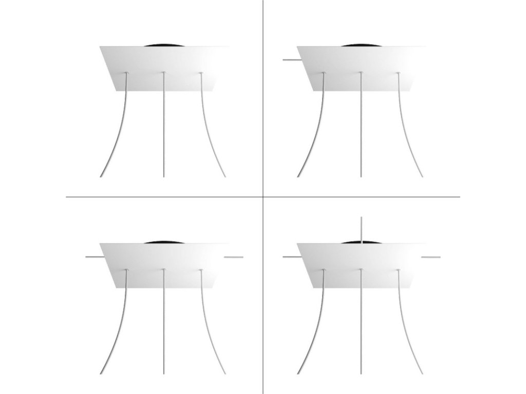 Štvorcový stropný baldachýn ROSE ONE, 400 mm, 3 otvory a 4 bočné otvory - lineárne