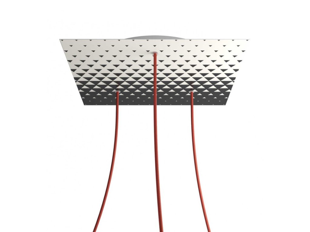 Štvorcový stropný baldachýn z edície Rose-One System predstavuje exkluzívne riešenie z dielne Creative-Cables, vďaka ktorému budú Vaše svietidlá vyzerať ešte dokonalejšie. Tento štvorcový stropný baldachýn Rose-One System s priemerom 400 mm a 3 otvormi je zostavený z menšieho kovového stropného baldachýnu, na ktorý sa pomocou káblových priechodiek pripevní štvorcová platňa s farebným alebo obrazovým motívom s priemerom 400 mm. Vďaka tejto jednoduchej myšlienke budete mať oveľa väčšiu slobodu pri realizácii vlastných svetelných inštalácií. V ponuke si môžete vybrať hneď z niekoľkých sviežich farebných motívov a vzorov, ktoré sme pre vás pripravili. Prajeme vám veľa zábavy! Štvorcový stropný baldachýn Rose-One System s dĺžkou hrany 400 mm.
