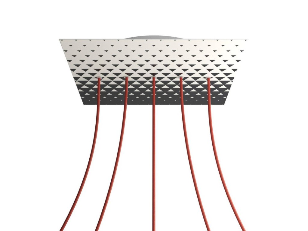 Štvorcový stropný baldachýn z edície Rose-One System predstavuje exkluzívne riešenie z dielne Creative-Cables, vďaka ktorému budú Vaše svietidlá vyzerať ešte dokonalejšie. Tento štvorcový stropný baldachýn Rose-One System s priemerom 400 mm a 5 otvormi vedľa seba je zostavený z menšieho kovového stropného baldachýnu, na ktorý sa pomocou káblových priechodiek pripevní štvorcová platňa s farebným alebo obrazovým motívom s priemerom 400 mm. Vďaka tejto jednoduchej myšlienke budete mať oveľa väčšiu slobodu pri realizácii vlastných svetelných inštalácií. V ponuke si môžete vybrať hneď z niekoľkých sviežich farebných motívov a vzorov, ktoré sme pre vás pripravili. Prajeme vám veľa zábavy! Štvorcový stropný baldachýn Rose-One System s dĺžkou hrany 400 mm.