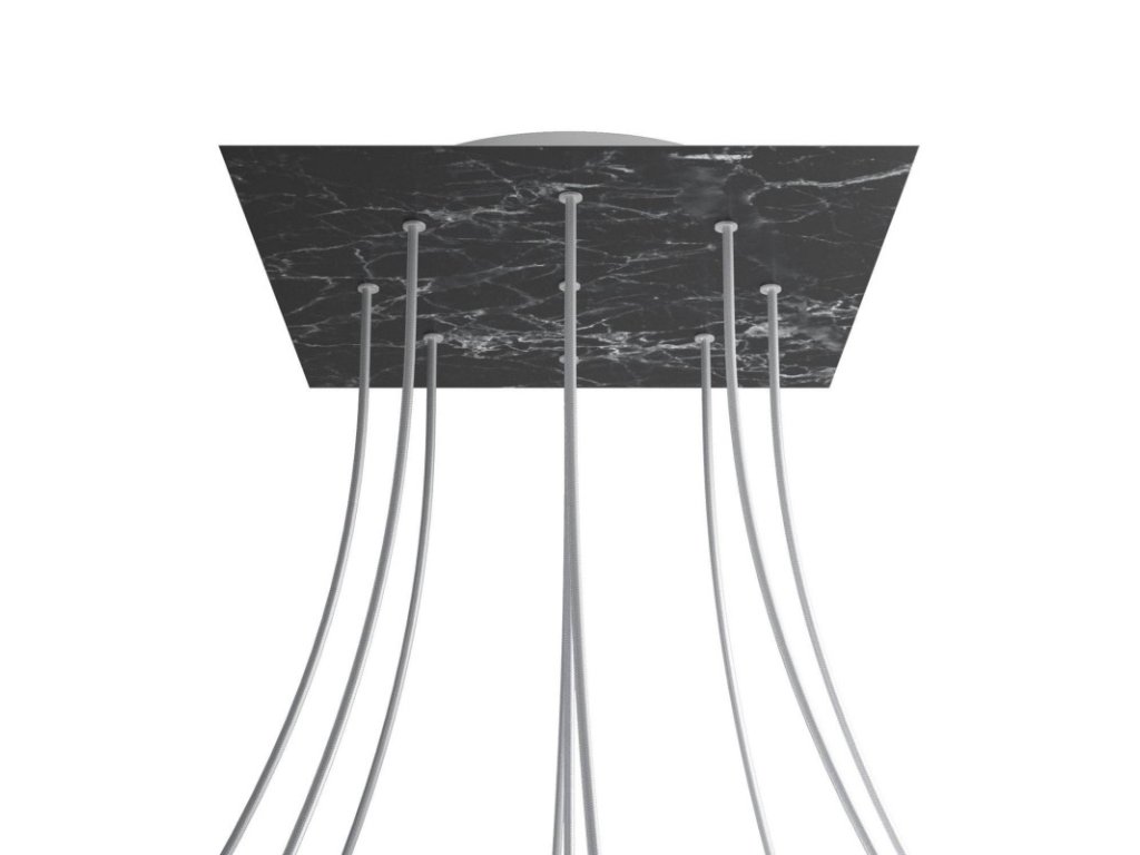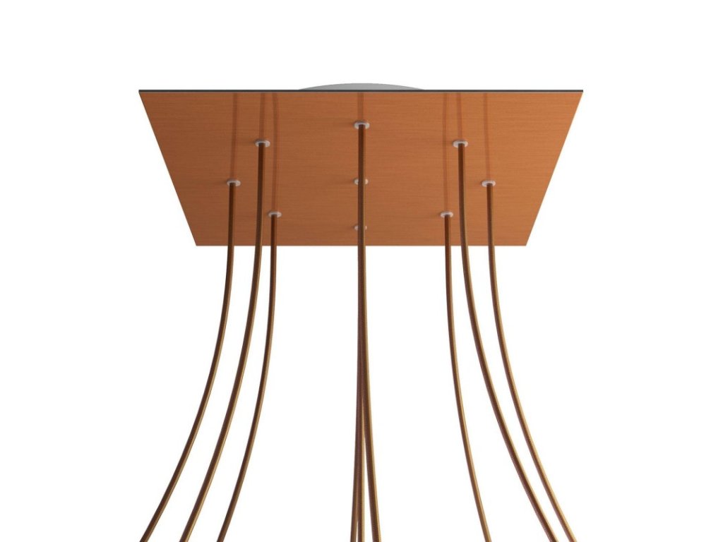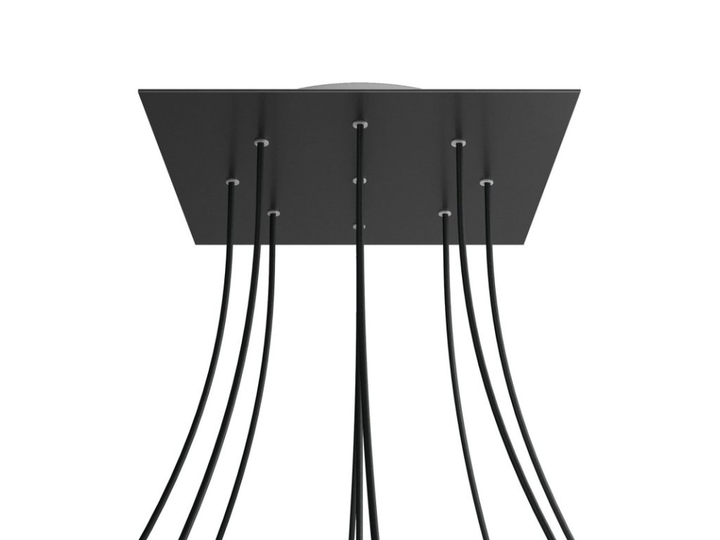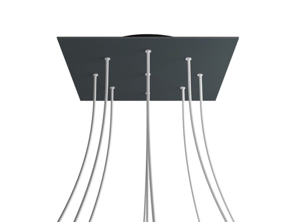 Štvorcový stropný baldachýn ROSE ONE, 400 mm, 9 otvorov a 4 bočné otvory