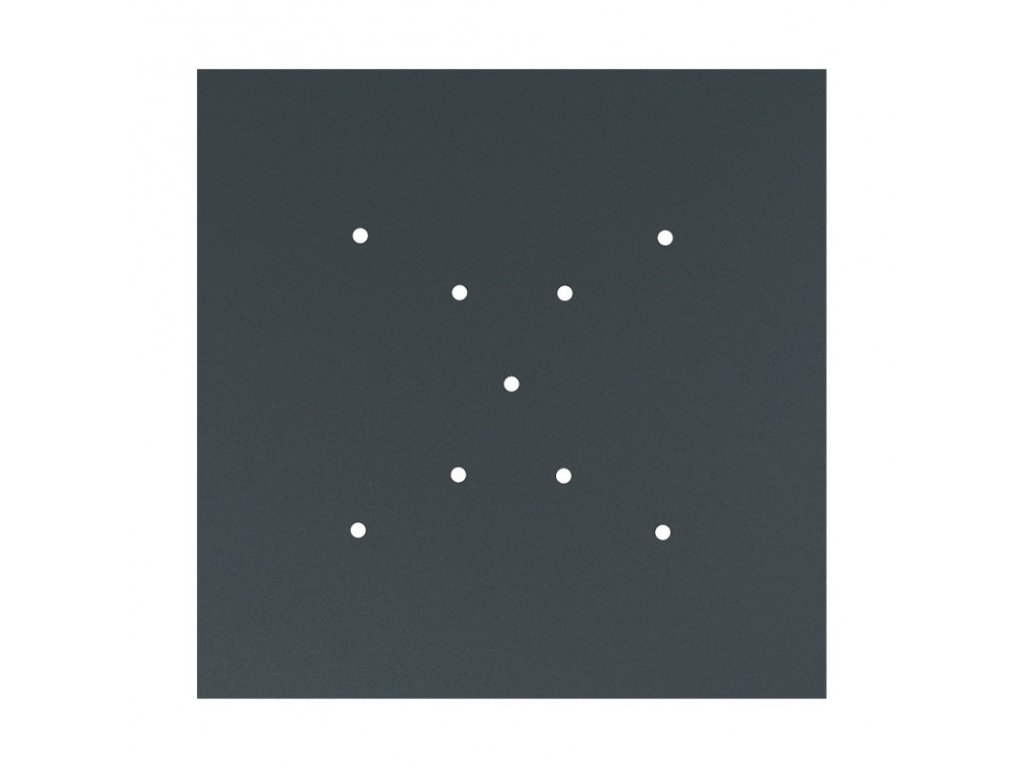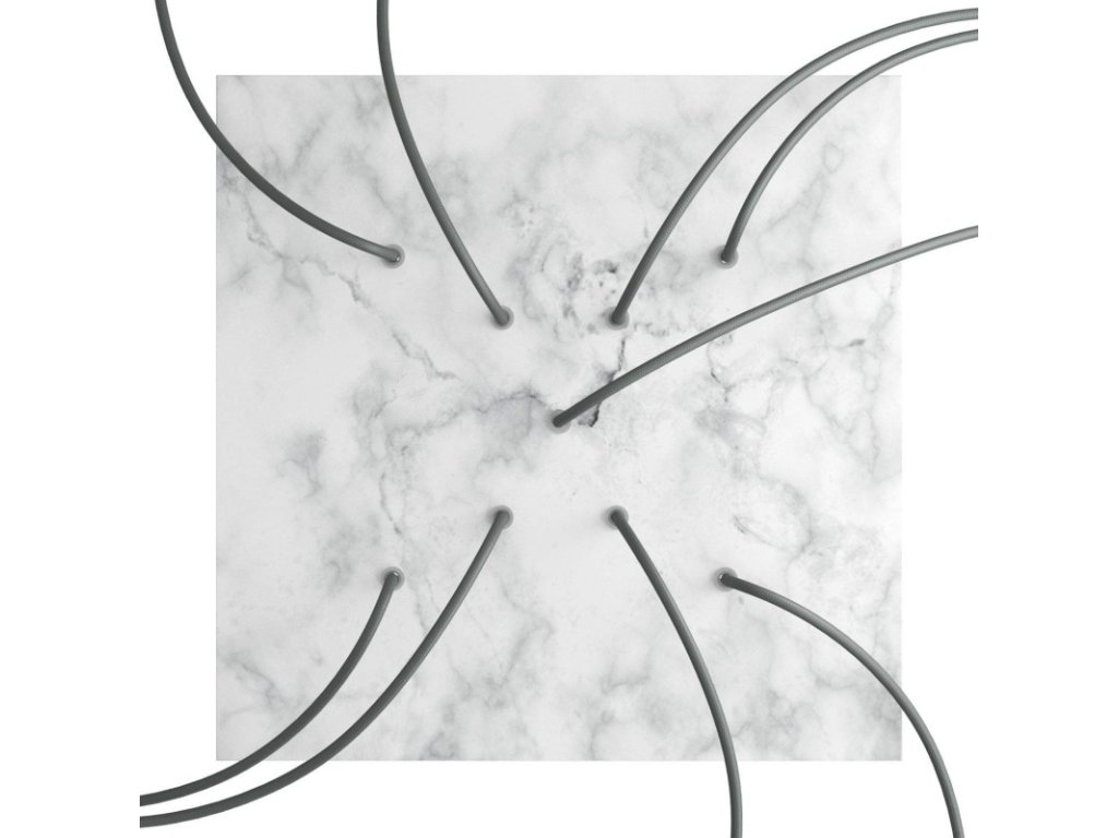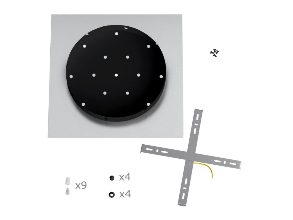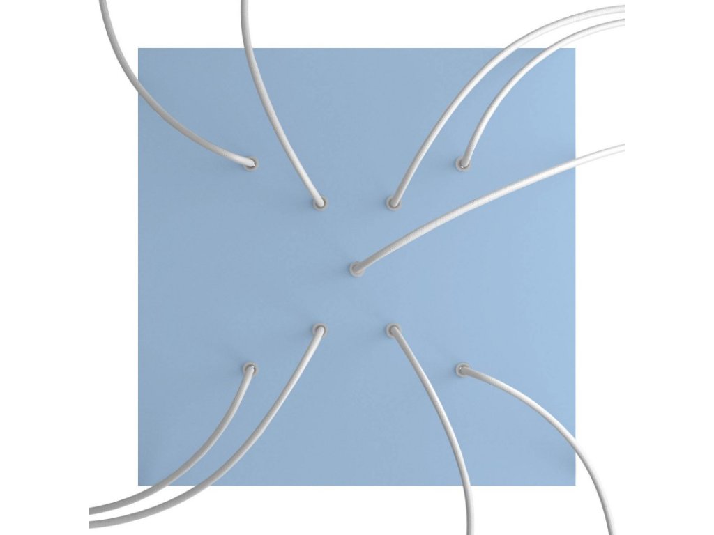 Štvorcový stropný baldachýn z edície Rose-One System predstavuje exkluzívne riešenie z dielne Creative-Cables, vďaka ktorému budú Vaše svietidlá vyzerať ešte dokonalejšie. Tento štvorcový stropný baldachýn Rose-One System s priemerom 400 mm a 9 otvormi s rozmiestnením v tvare X je zostavený z menšieho kovového stropného baldachýnu, na ktorý sa pomocou káblových priechodiek pripevní štvorcová platňa s farebným alebo obrazovým motívom s priemerom 400 mm. Vďaka tejto jednoduchej myšlienke budete mať oveľa väčšiu slobodu pri realizácii vlastných svetelných inštalácií. V ponuke si môžete vybrať hneď z niekoľkých sviežich farebných motívov a vzorov, ktoré sme pre vás pripravili. Prajeme vám veľa zábavy! Štvorcový stropný baldachýn Rose-One System s dĺžkou hrany 400 mm.