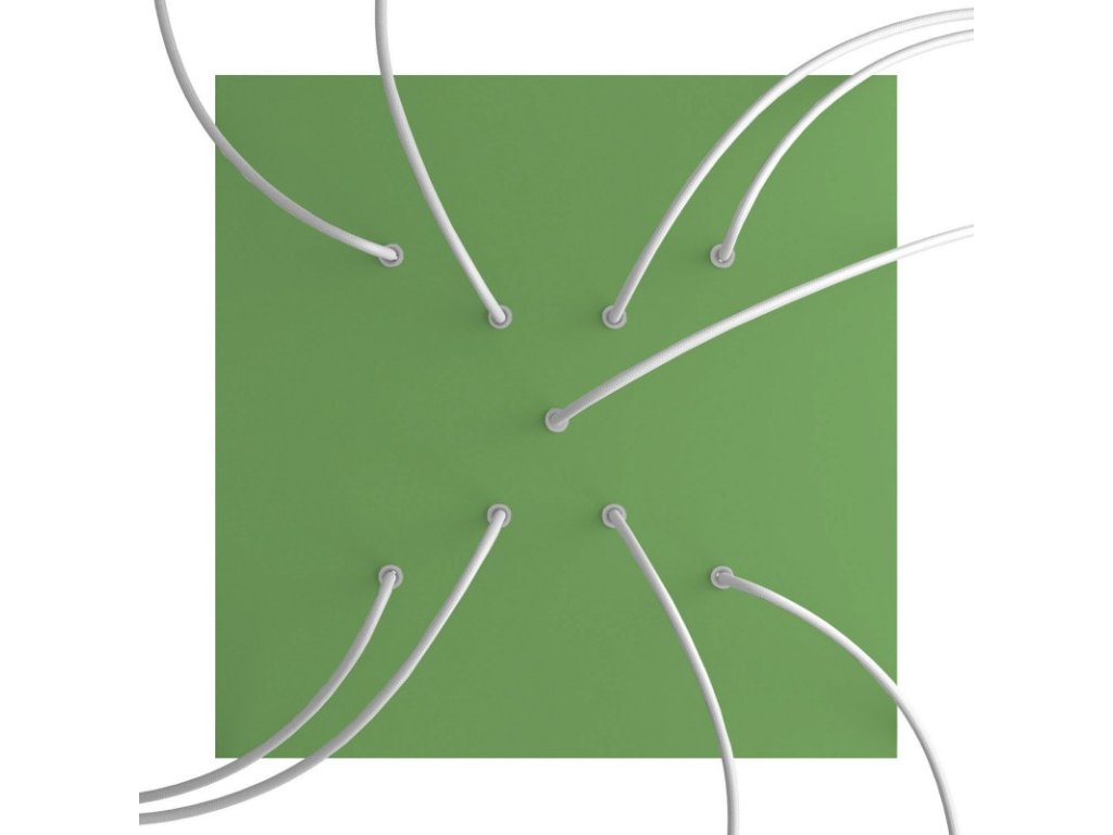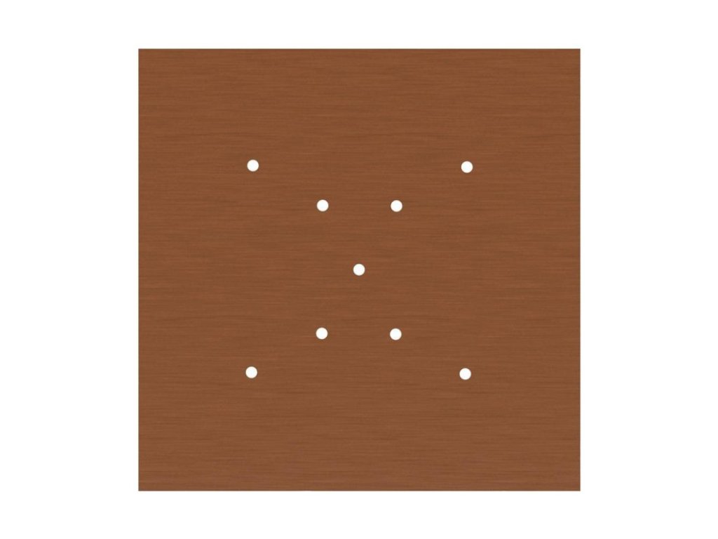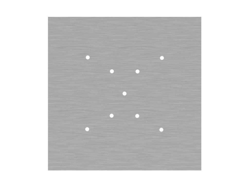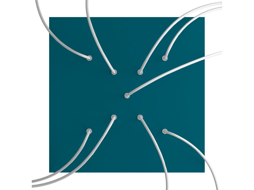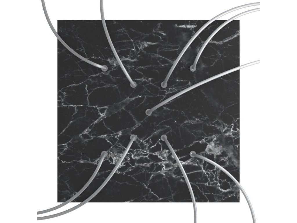 Štvorcový stropný baldachýn z edície Rose-One System predstavuje exkluzívne riešenie z dielne Creative-Cables, vďaka ktorému budú Vaše svietidlá vyzerať ešte dokonalejšie. Tento štvorcový stropný baldachýn Rose-One System s priemerom 400 mm a 9 otvormi s rozmiestnením v tvare X je zostavený z menšieho kovového stropného baldachýnu, na ktorý sa pomocou káblových priechodiek pripevní štvorcová platňa s farebným alebo obrazovým motívom s priemerom 400 mm. Vďaka tejto jednoduchej myšlienke budete mať oveľa väčšiu slobodu pri realizácii vlastných svetelných inštalácií. V ponuke si môžete vybrať hneď z niekoľkých sviežich farebných motívov a vzorov, ktoré sme pre vás pripravili. Prajeme vám veľa zábavy! Štvorcový stropný baldachýn Rose-One System s dĺžkou hrany 400 mm.