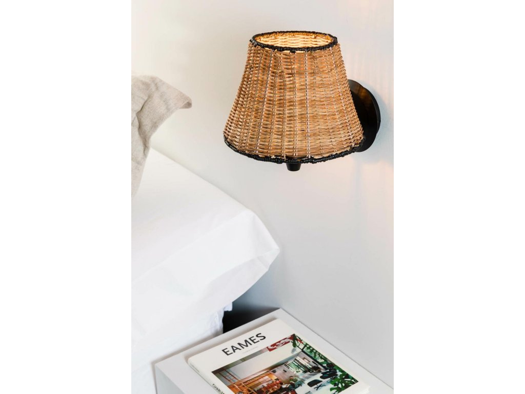 SUMBA čierna/ratan nástenná lampa - FARO